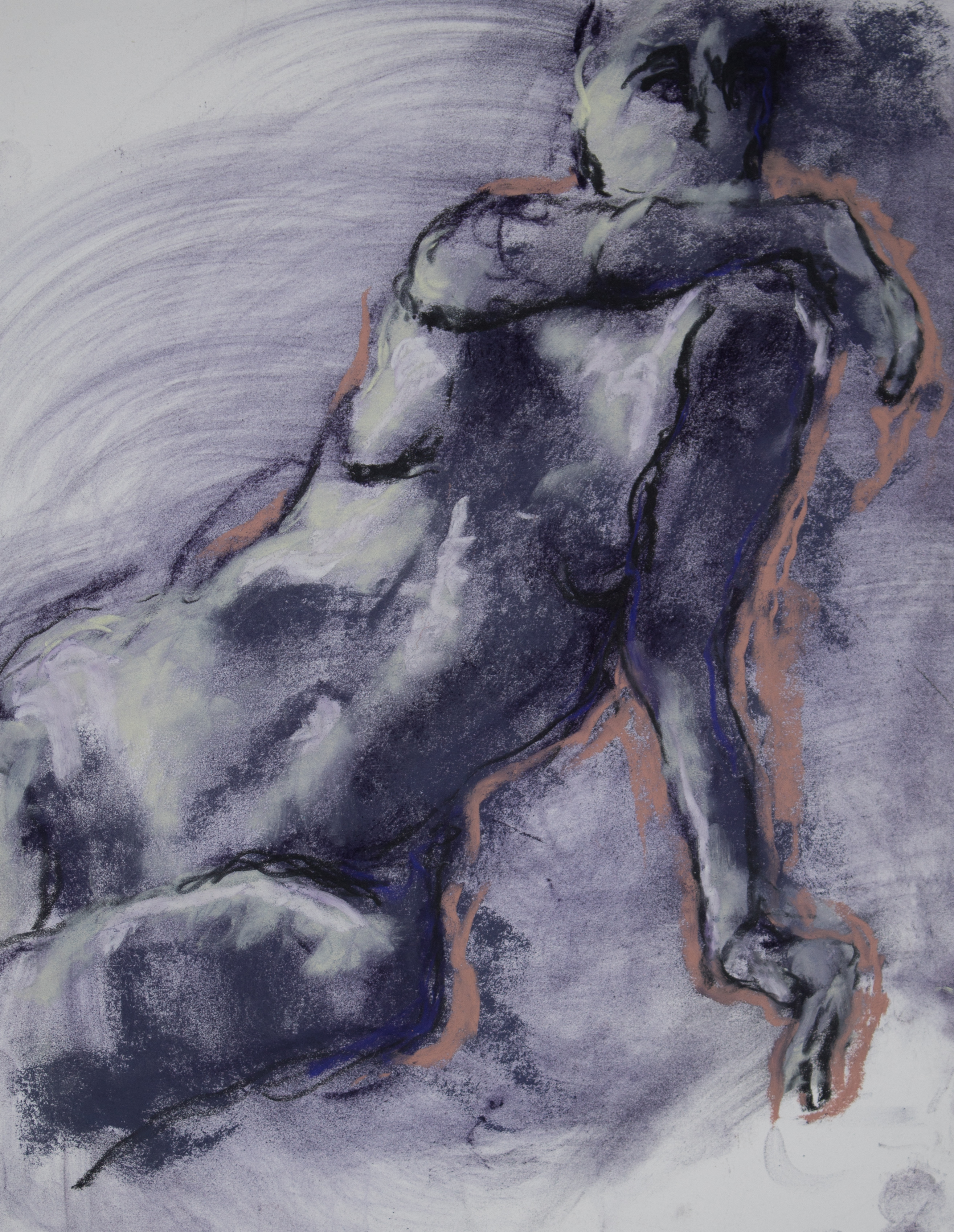 Drawing is of nude female done in charcoal and pastel on white drawing paper.