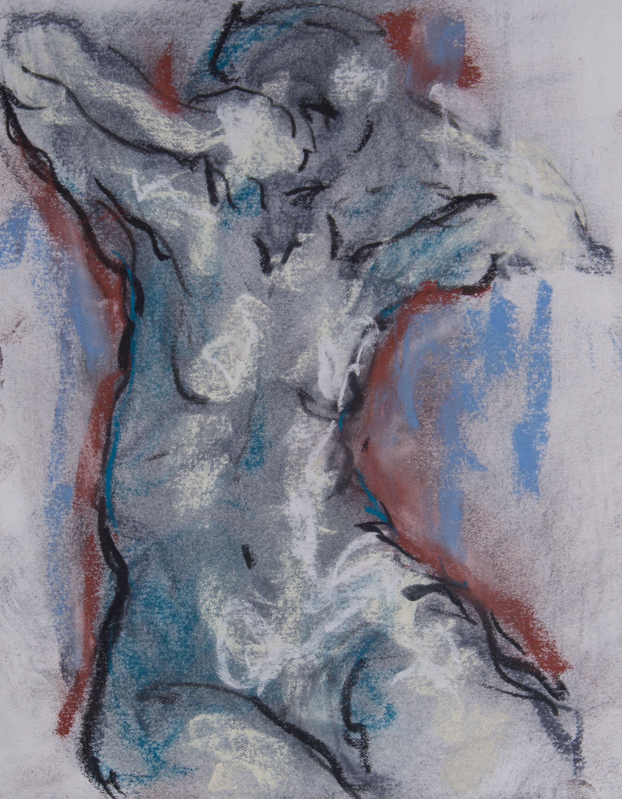 Drawing is of nude female done in charcoal and pastel on white drawing paper.