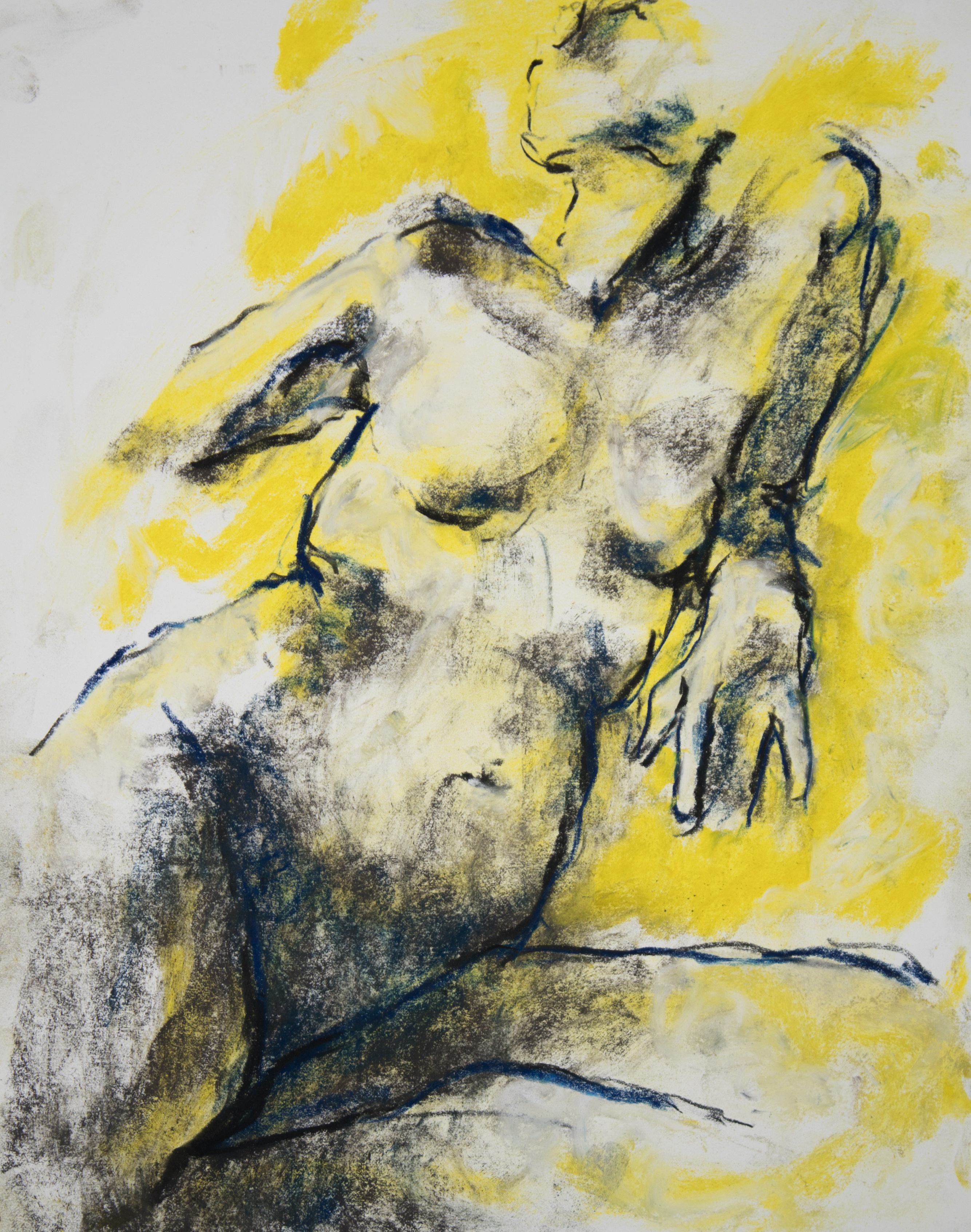 After several decades of constant life drawing I have worked out a method that keeps joy in the process and sustains me day to day. I start with a thick contour and then smudge it with a cloth after which I refine with a more definitive line and add shadow and highlights to finish. I have been exploring a multicolored line and add energy to the charcoal line with adjacent color often bright or complementary to the overall tone. I like to price my work affordably so that it is accessible to the widest possible audience. We need original art on our walls and in our lives. I am always honored when my drawings are chosen.