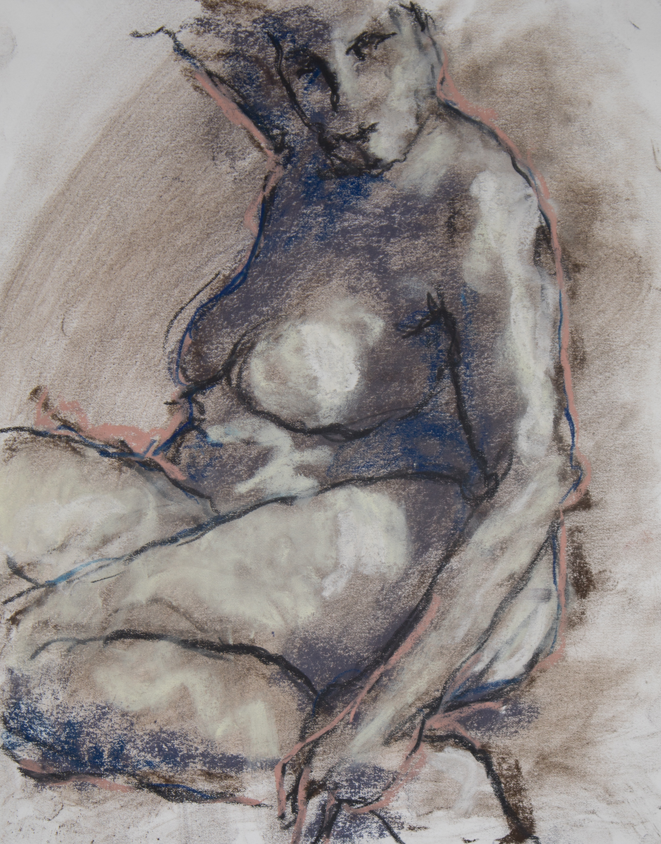 Drawing is of nude female done in charcoal and pastel on white drawing paper.