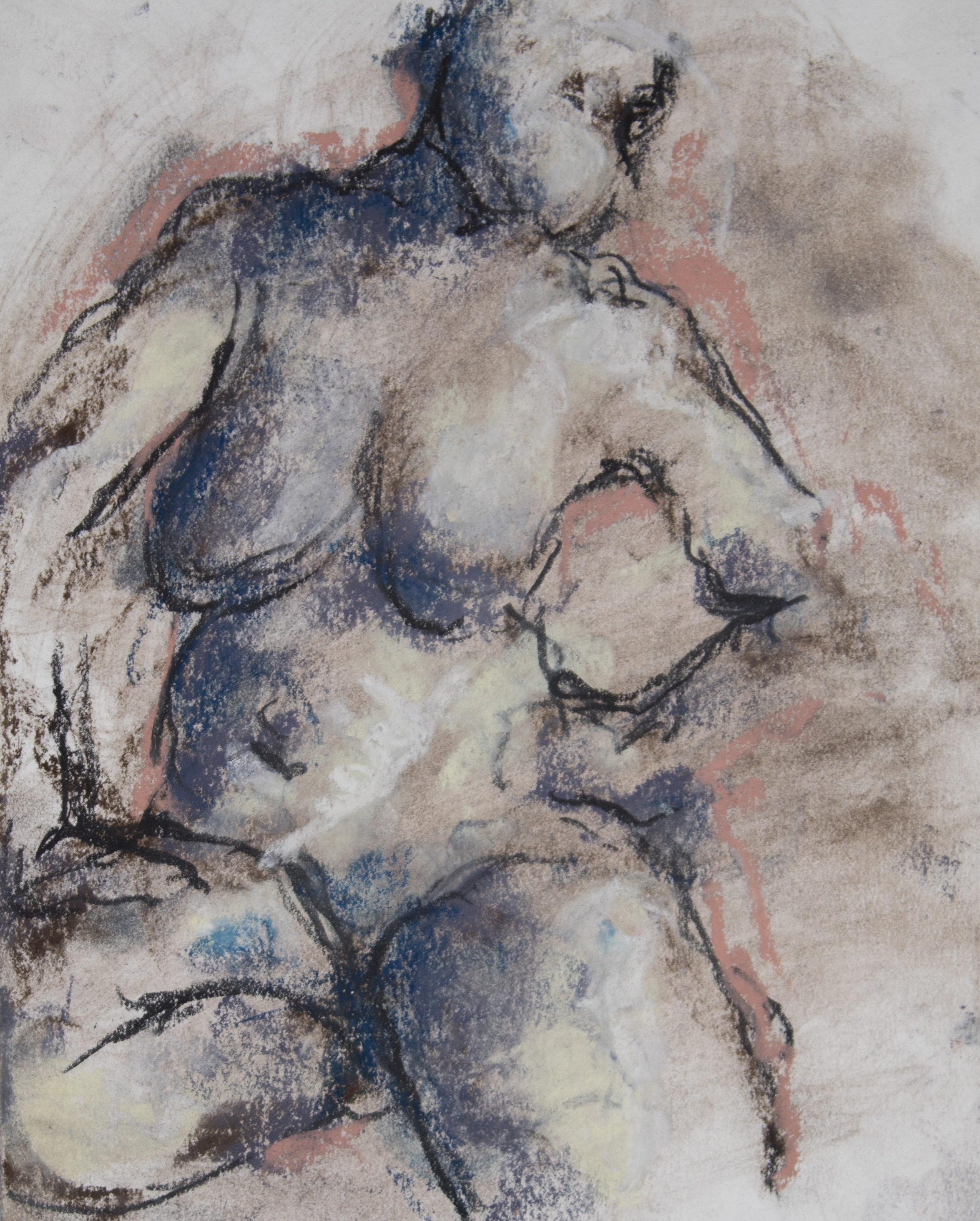 Drawing is of nude female done in charcoal and pastel on white drawing paper.