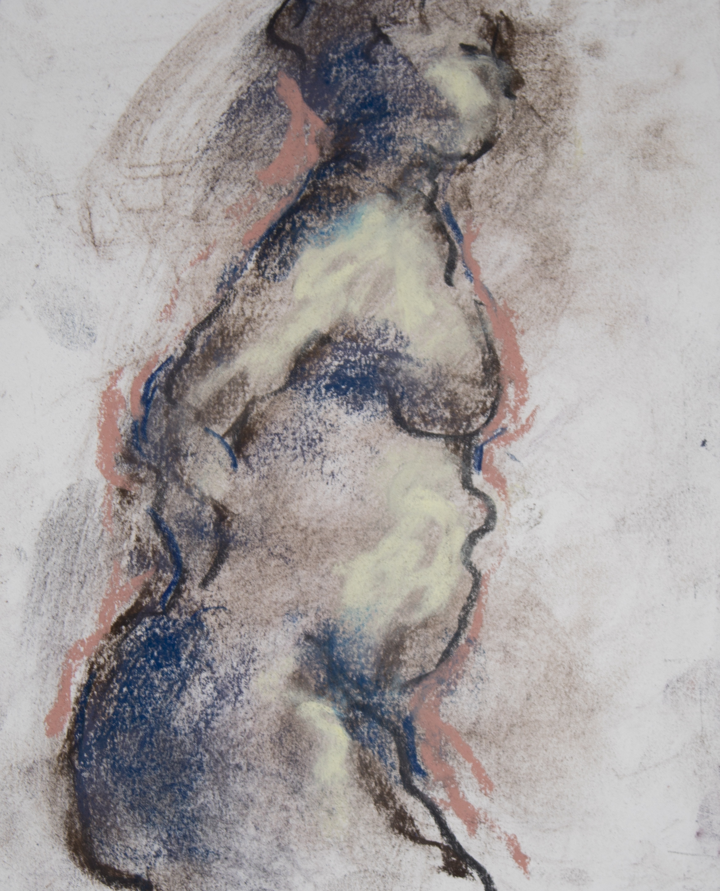 Drawing is of nude female done in charcoal and pastel on white drawing paper.