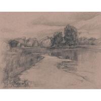 Hand-Drawn Original, Summer at the Lake, Landscape Drawing. 12" x 9", Ready-to-frame. Toned paper creates a classical vintage vibe.