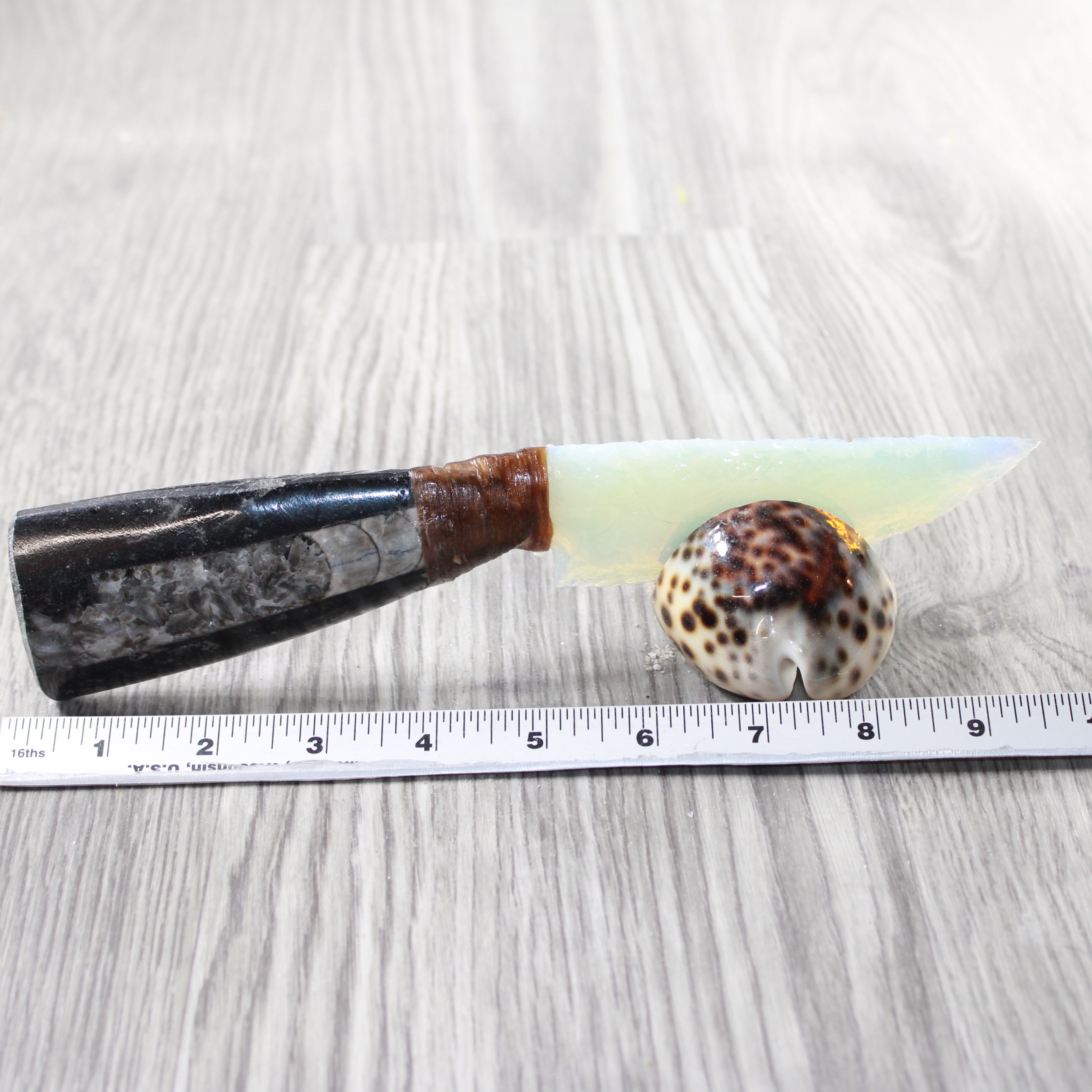 Ornamental knife with an opalite blade.
