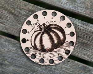 Embroidery floss organizer made from walnut wood. This mandala needlepoint thread holder has 16 circle holes to keep your yarn organized.