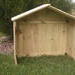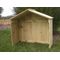 | This is a Large handmade Collapsible Nativity Stable, that is made from rough cut pressure treated pine. It folds for easy storage. The assembled size is about 42" wide back wall,17.5" side walls x 29.5" high sides, to 38" high in the middle. Overall (exterior dimensions) at the roof,44" wide x 18" deep x 40" high. Collapsed size is a little over 41" wide x 38" x 5.25" high. The roof folds in the middle on two hinges and just rests on the walls when opened. Each wall folds on two hinges. |