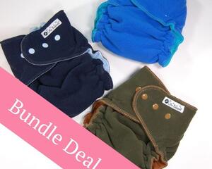 What are AI2s? All-in-Two diapers (aka AI2) are "All" you need, in "2" pieces: the shell and the soaker/insert. The outer shell is waterproof and it functions like a diaper cover. The soaker (also called insert) is the absorbent part that snaps into the inside of the shell. If only the insert becomes wet, you can simply switch out a fresh insert and re-use the shell. Little Boppers AI2s are available in two different styles: Hidden-PUL and Wind Pro. They are basically the same, except for what makes up the water-resistant layer. In the Hidden-PUL version, that layer is polyurethane coated polyester knit (PUL), a commonly used diaper fabric. In the Wind Pro version, that layer is a top-quality technical fleece produced by Polartec that is both breathable and water-resistant. The Hidden-PUL is trimmer fitting. The Wind Pro version is more breathable. Both versions of AI2s have a three-petal bamboo and cotton soaker topped with velour. The One Size option includes a snap-in booster that can function as a small newborn soaker on its own, a belly snap cover, and a fold-down rise. The Sized versions have hidden-belly snaps, so baby feels nothing but smooth fabric against the skin.