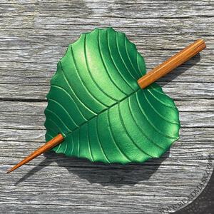 ✭ Hand crafted with tooling leather, artist grade acrylic paints, and high quality wooden hairstick