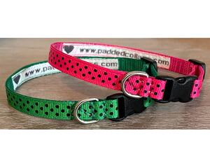 Quality handmade webbing dog & cat collars with soft fleece or scuba neoprene techno padding; fun prints collars; bandana dog collars, & leashes of all lengths. Padded collars are MADE TO MEASURE just for your pet. (so they fit ONE size only, and can't be returned). You must follow MY measuring guide closely - see the last photo of each listing. Please check the WIDTH of the collar you are buying - in the title / description. My own web page will also show you the measuring instructions, and the 3 widths of collar I make: www.paddedcollars.com/colours Also look here for custom options, such as adding slide on ID tags, or completely metal free collars (please ask about these options before you buy): www.paddedcollars.com/custom I have made tens of thousands of collars for all sizes of dogs - from chihuahuas & Chinese Crested, to Newfoundlands & Irish Wolfhounds - every dog is welcome.... and cats, goats....and all! My padded collars are used by several UK national rescue organisations/kennels. Your Pets Gallery: https://www.paddedcollars.com/...Thanks for looking :)RuthAll padded collar designs (c) 2008-2025 R Sheller, Paddedcollars.com