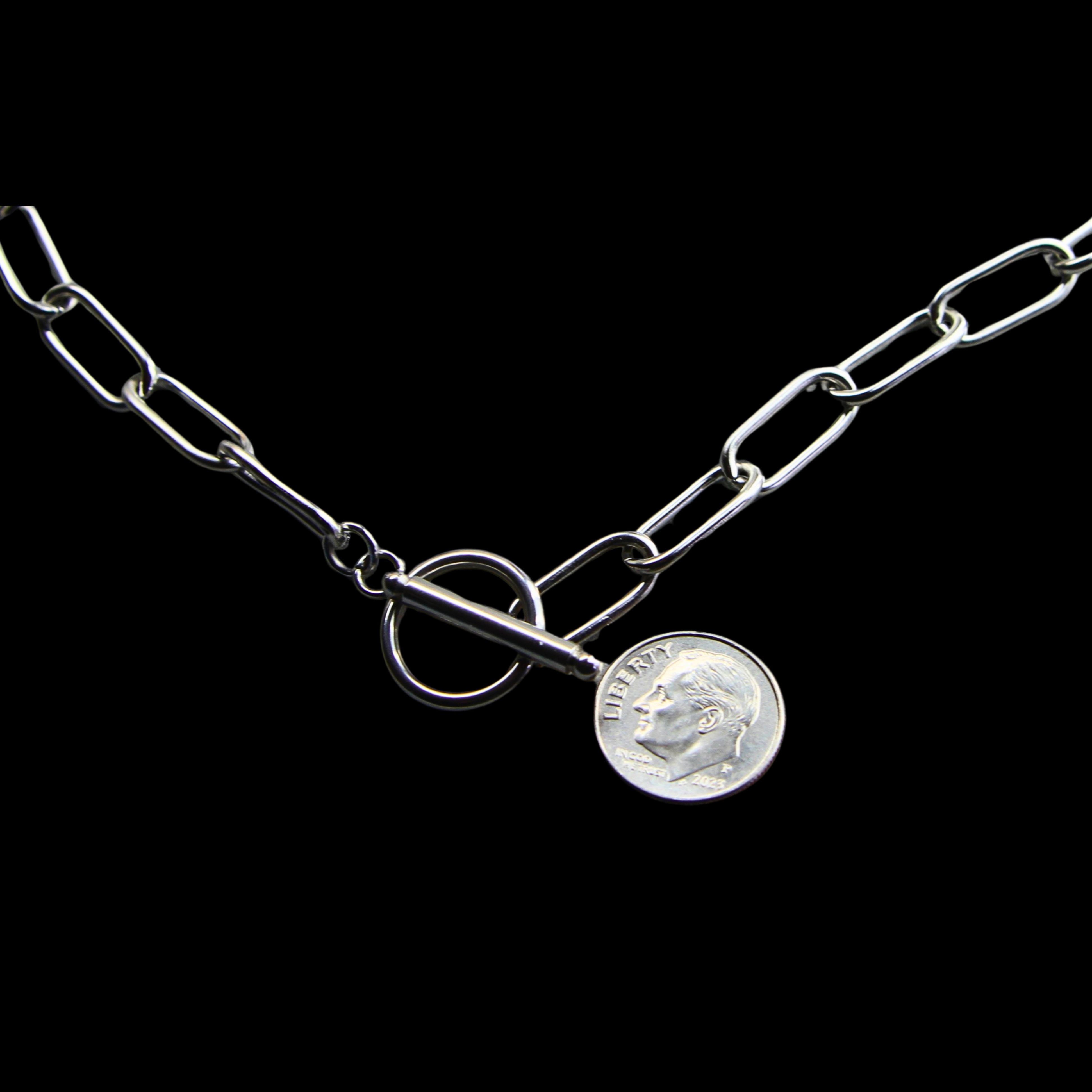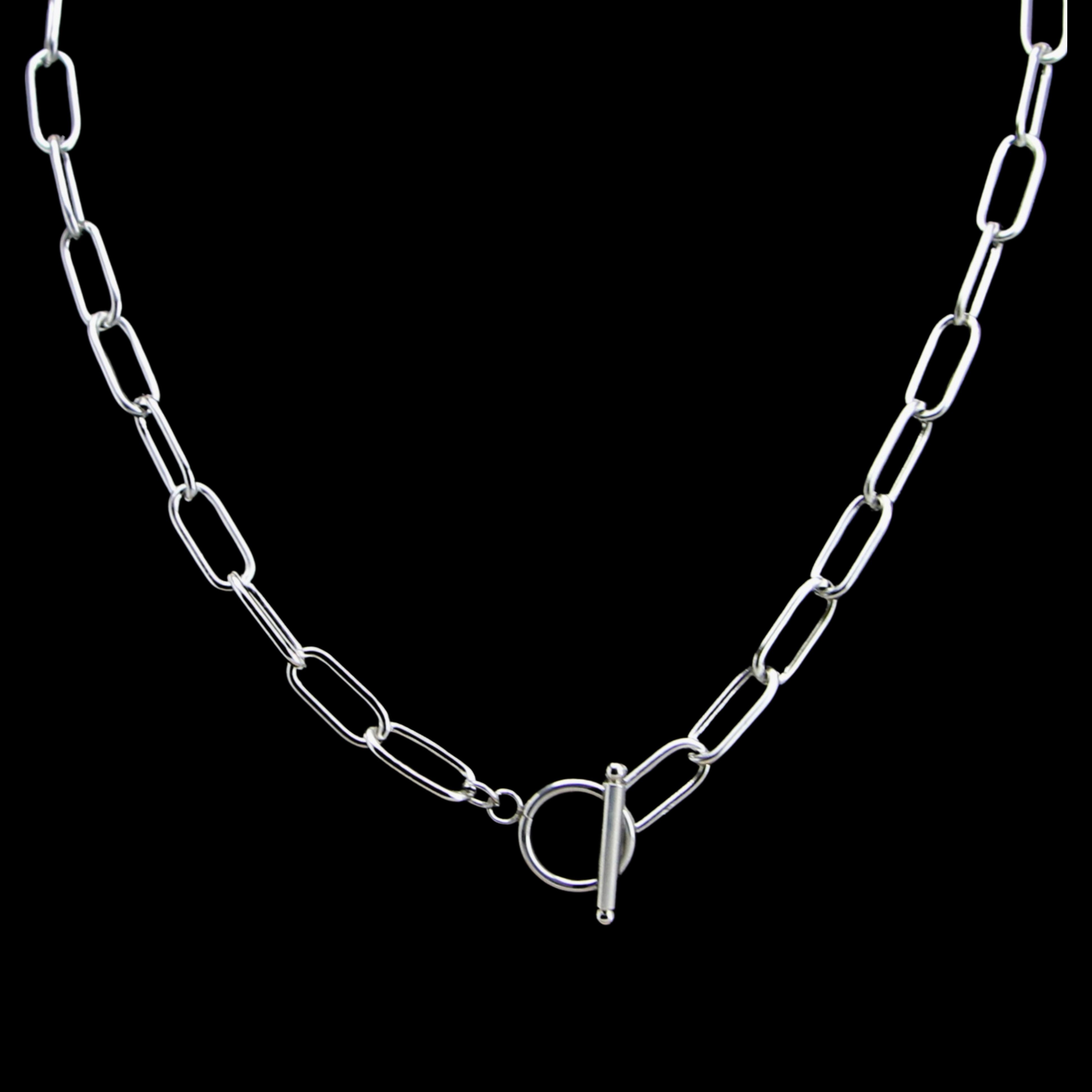 This SURGICAL GRADE STAINLESS STEEL PAPER CLIP necklace with a toggle clasp is the perfect accessory for adding a little fun to your day or any outfit. It's a great layering necklace and goes well with everything!