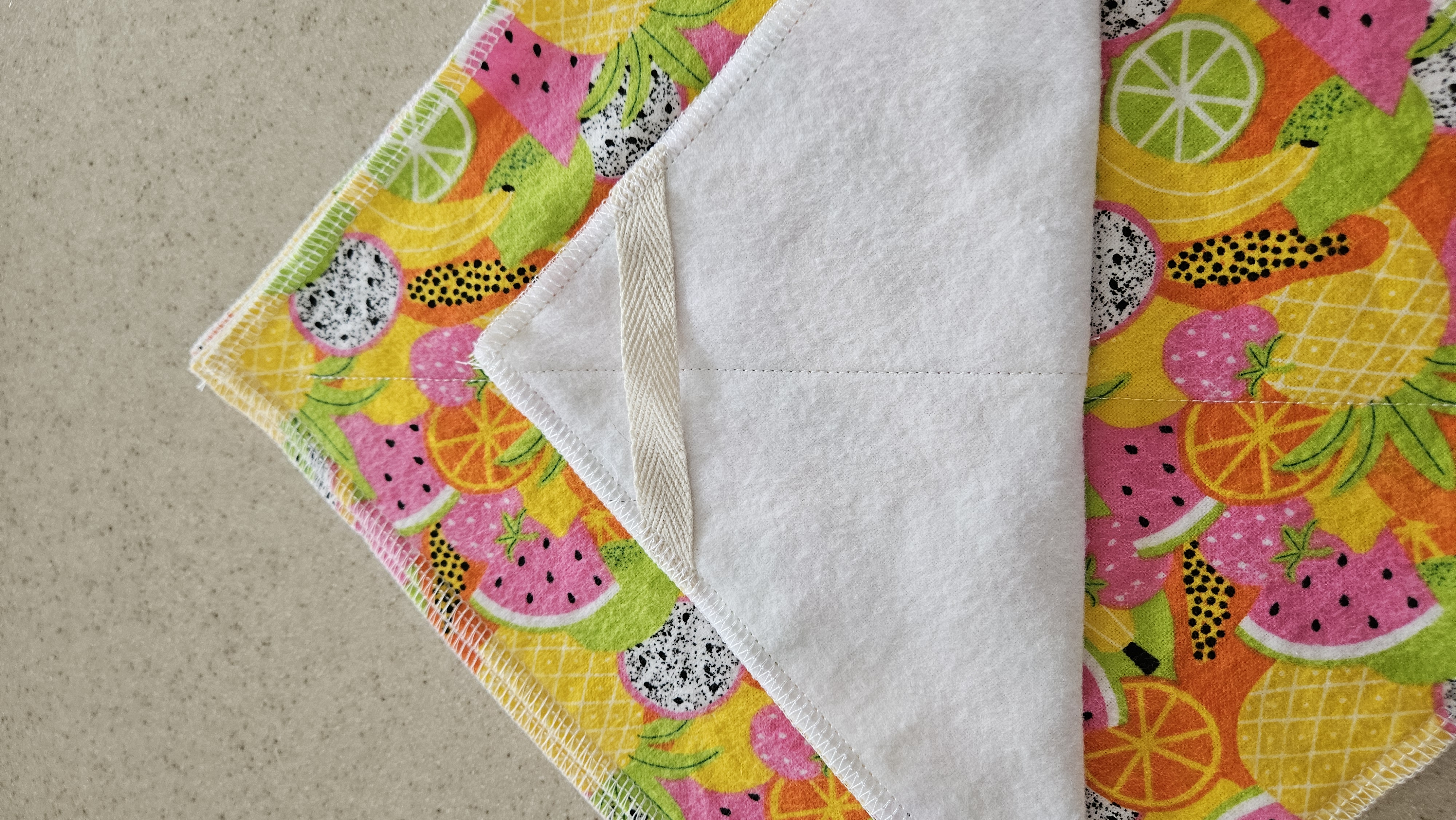 Each towel is made from pre-washed 100% cotton flannel. Towels are double sided with flannel fabric.
