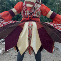 All my garments are made by me in my home. I use yardage from my personal collection as well as many up-cycled sources including curtains, table clothes, vintage clothing, upholstery, blankets, scarves, etc. I've been sewing for more than 35 years and my inspiration comes from a deep love for costumery, fairies, elves, bohemians, festivals of all kinds, fantasy books and whimsical movies. Each piece is a unique emanation of my creativity. And, I LOVE pockets which is why every coat has at least one set of pockets, some have two sets, some even have three sets of pockets, and a few fairycoats have hidden pockets!