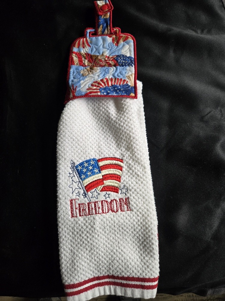 One hundred percent cotton towel and embroidery thread to combine unique design.