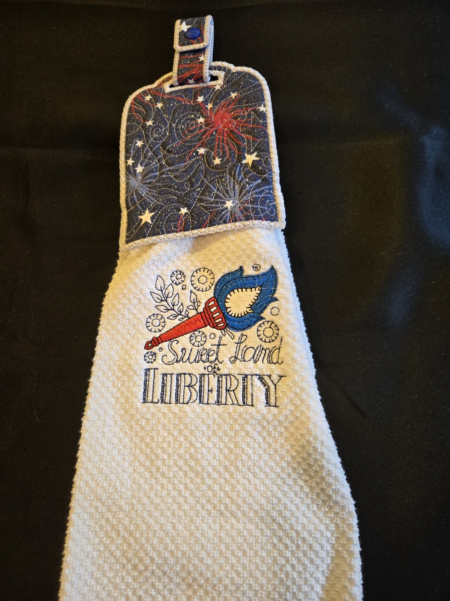 This handmade item combines one hundred percent cotton towel, embroidery thread and appliqued material to create unique embroidered design kitchen towels for all occasions. One for $20, two for $35