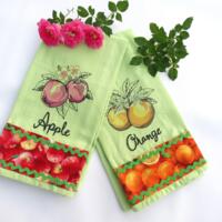 Created with quality cotton dish towels. Machine embroidered designs using a protective stabilizer on both sides for long lasting durability.