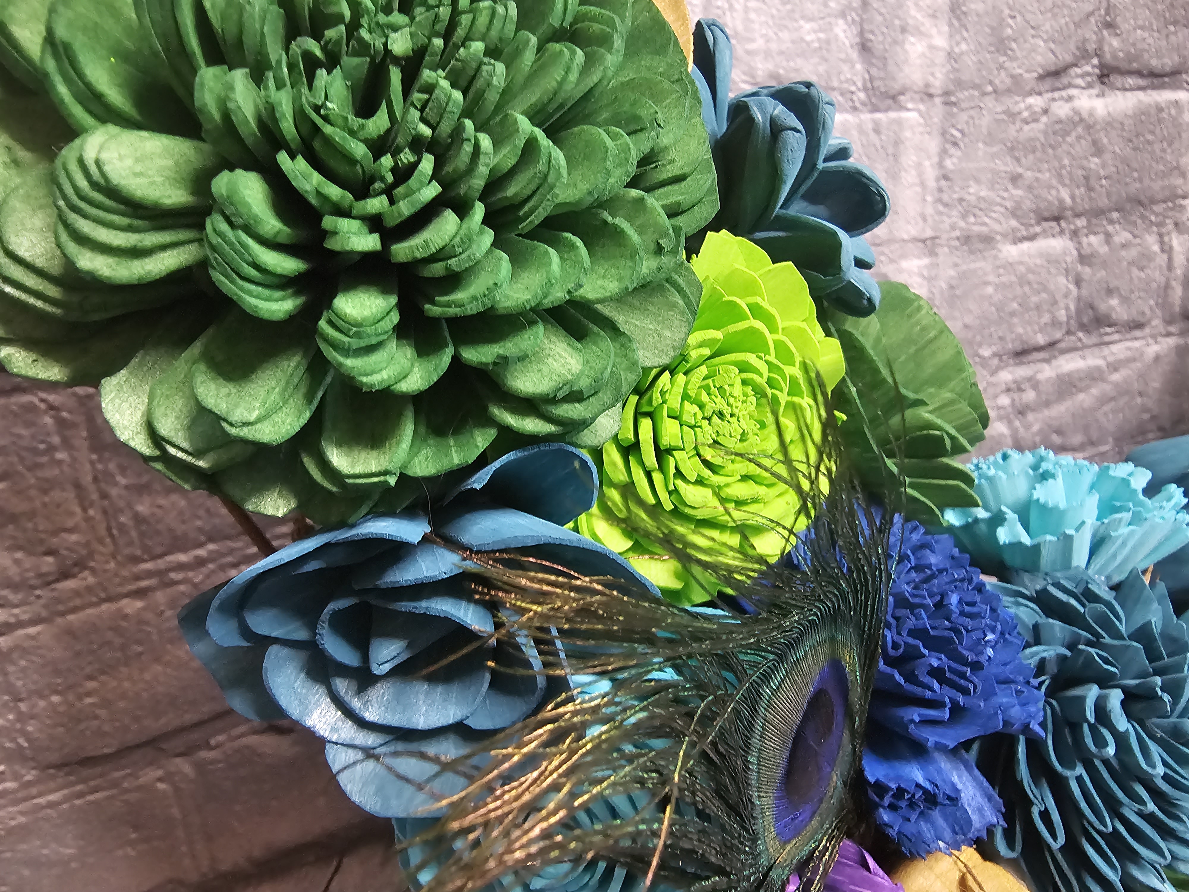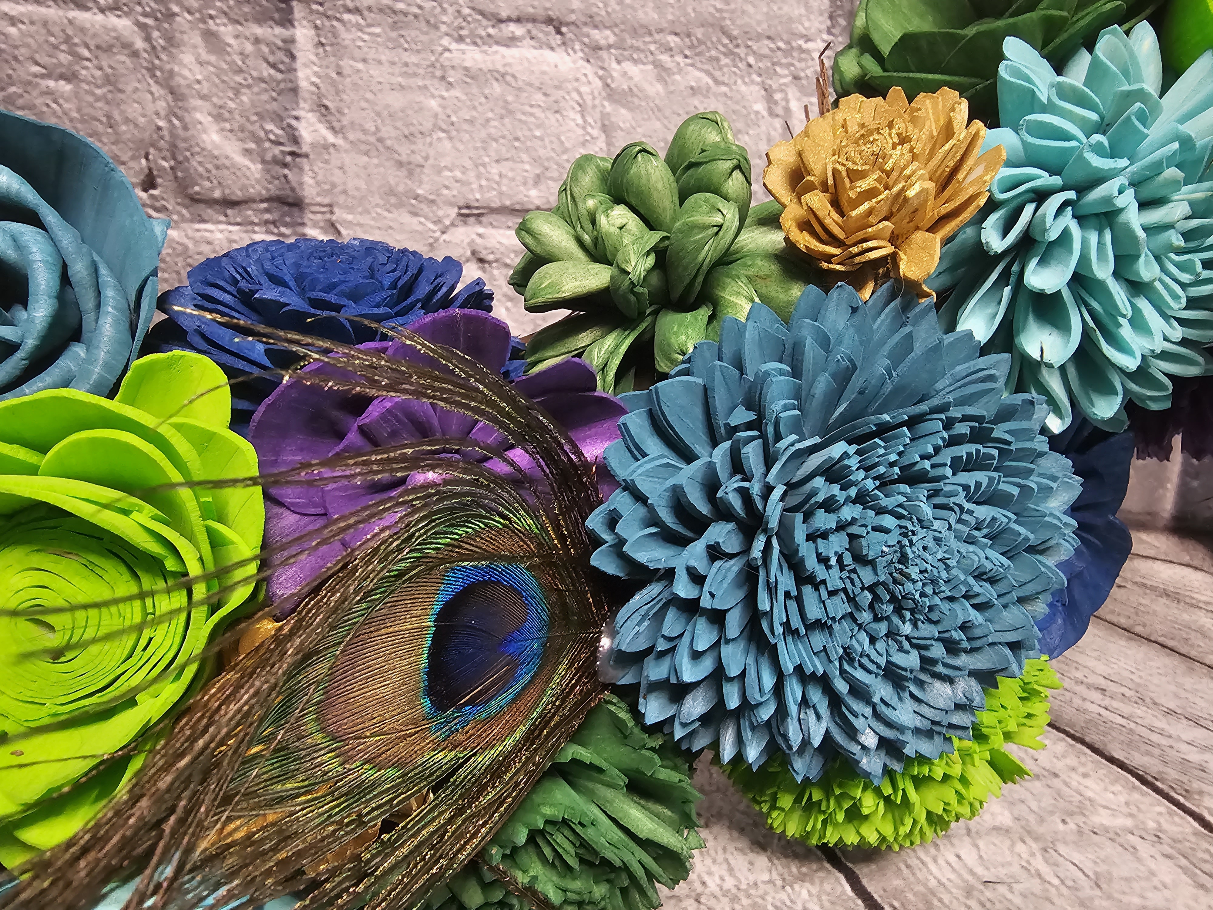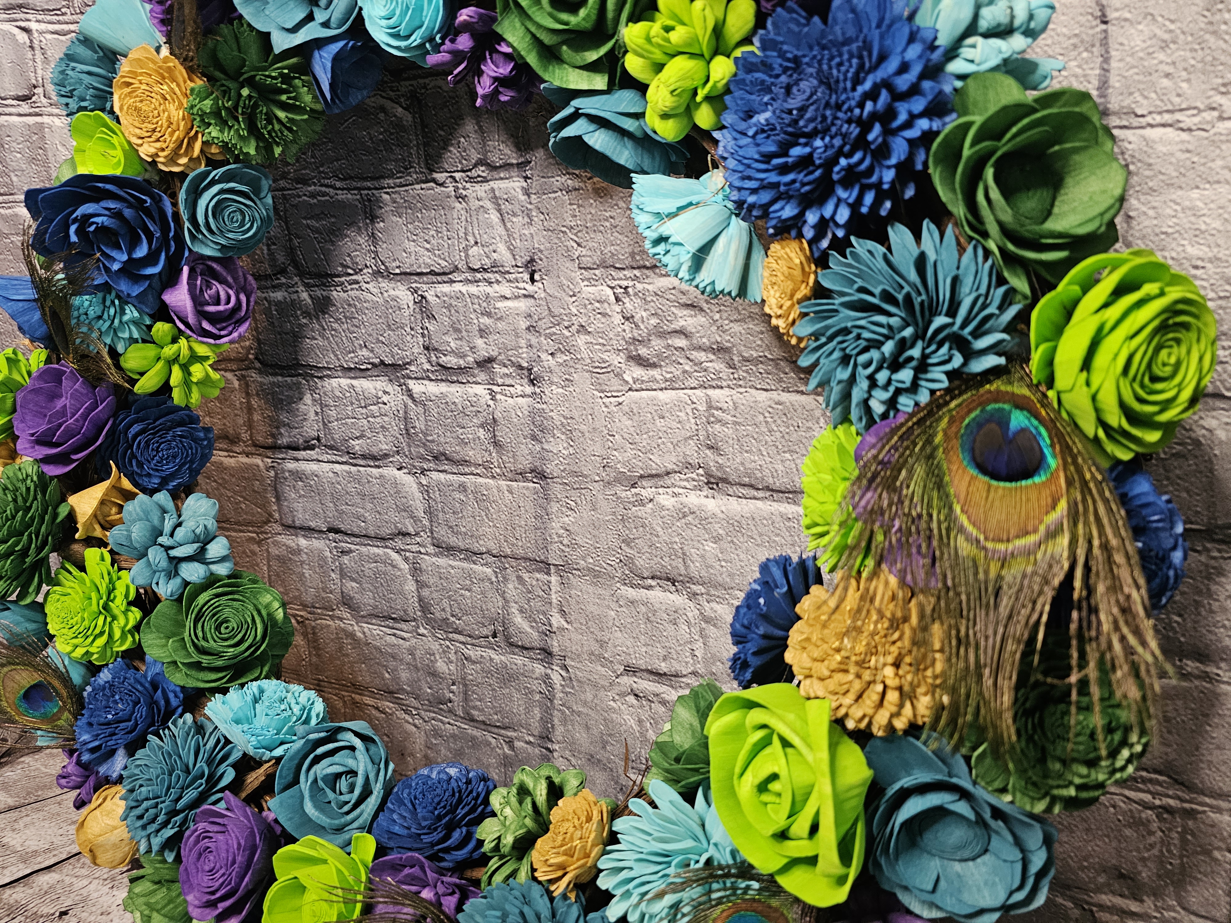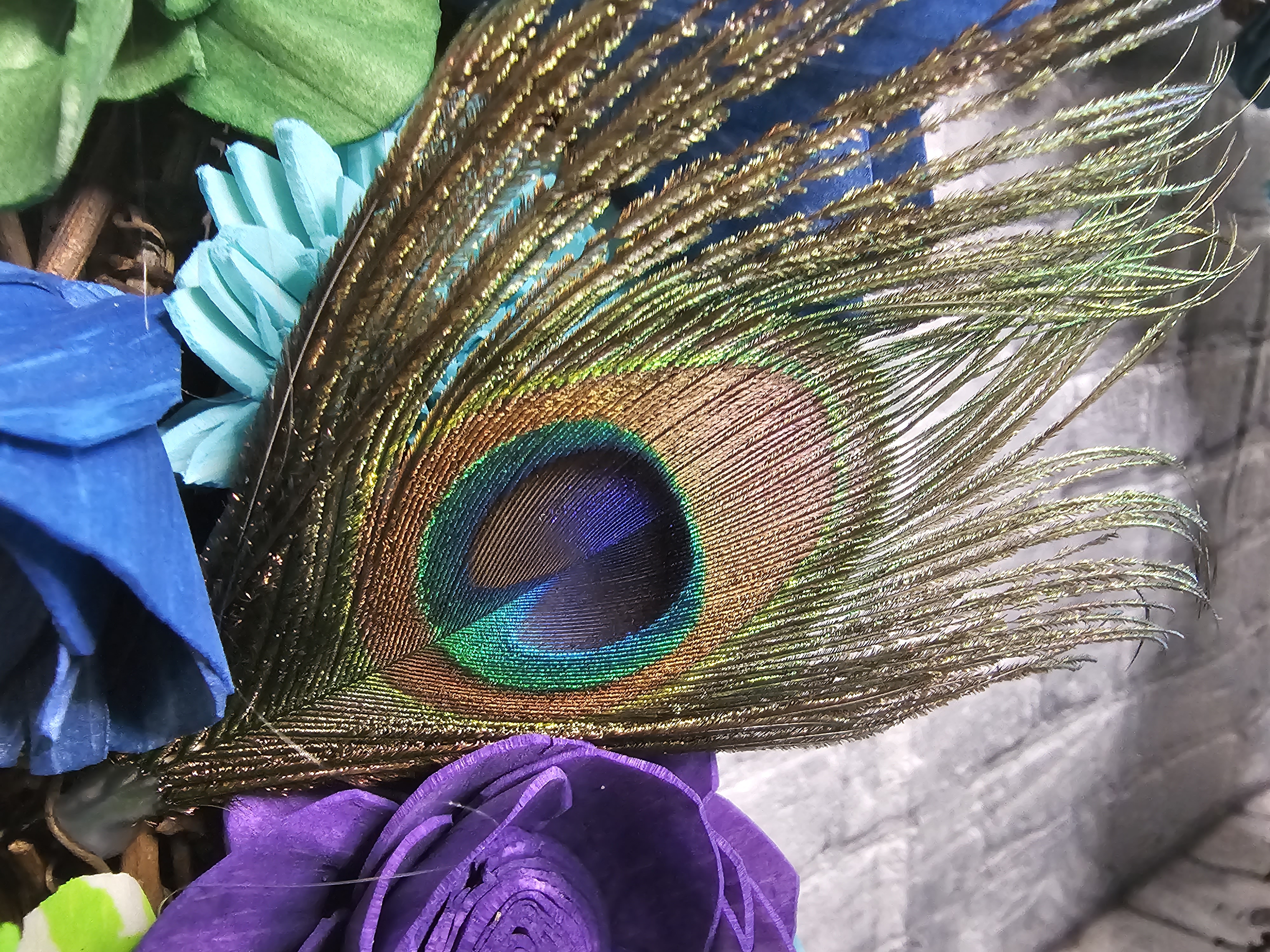 Because each wreath is handcrafted to order, slight variations in flower type and color placement will occur. The overall peacock color story and feather design will remain consistent, but no two pieces are identical — ensuring your wreath is truly one of a kind.