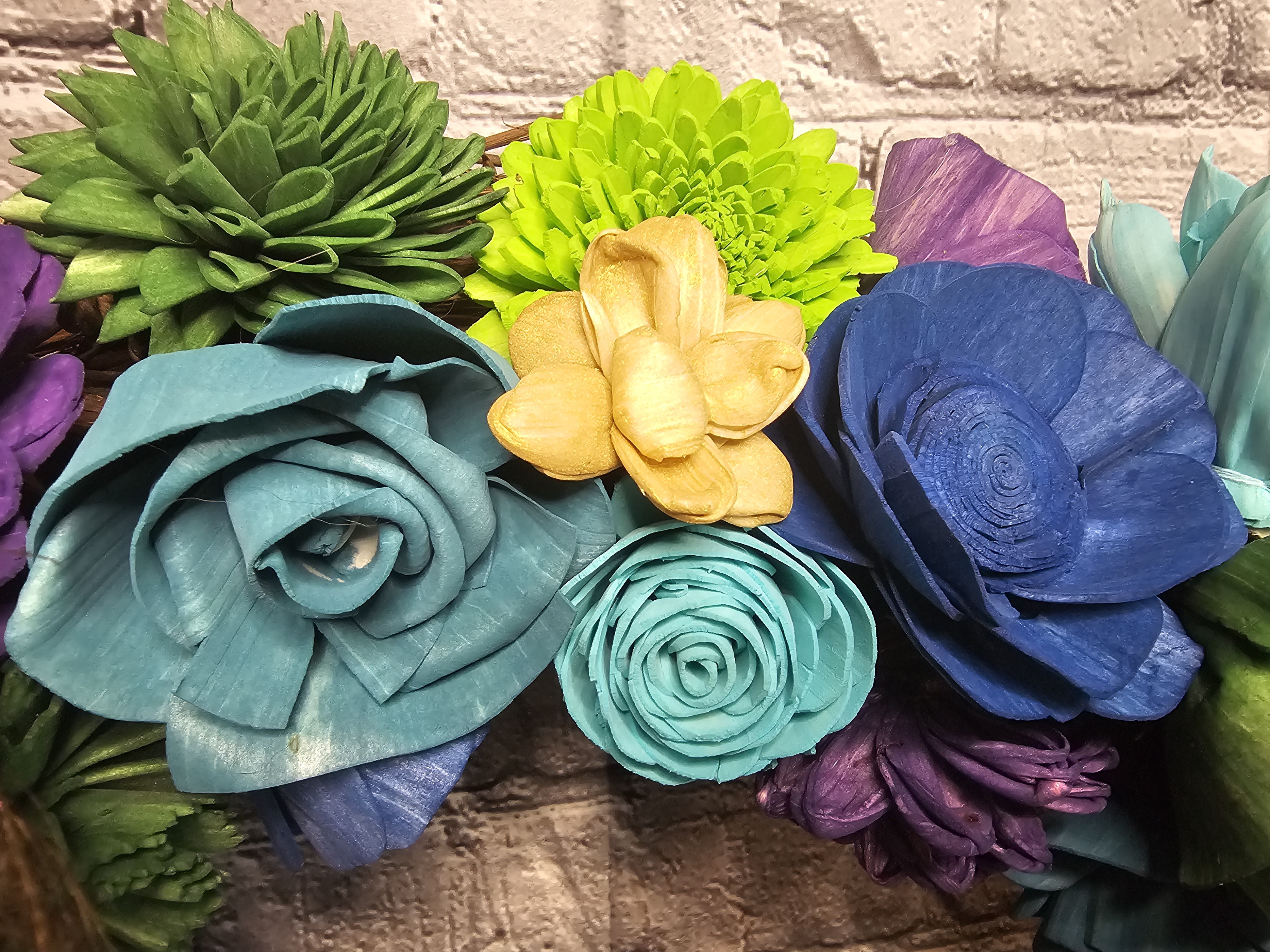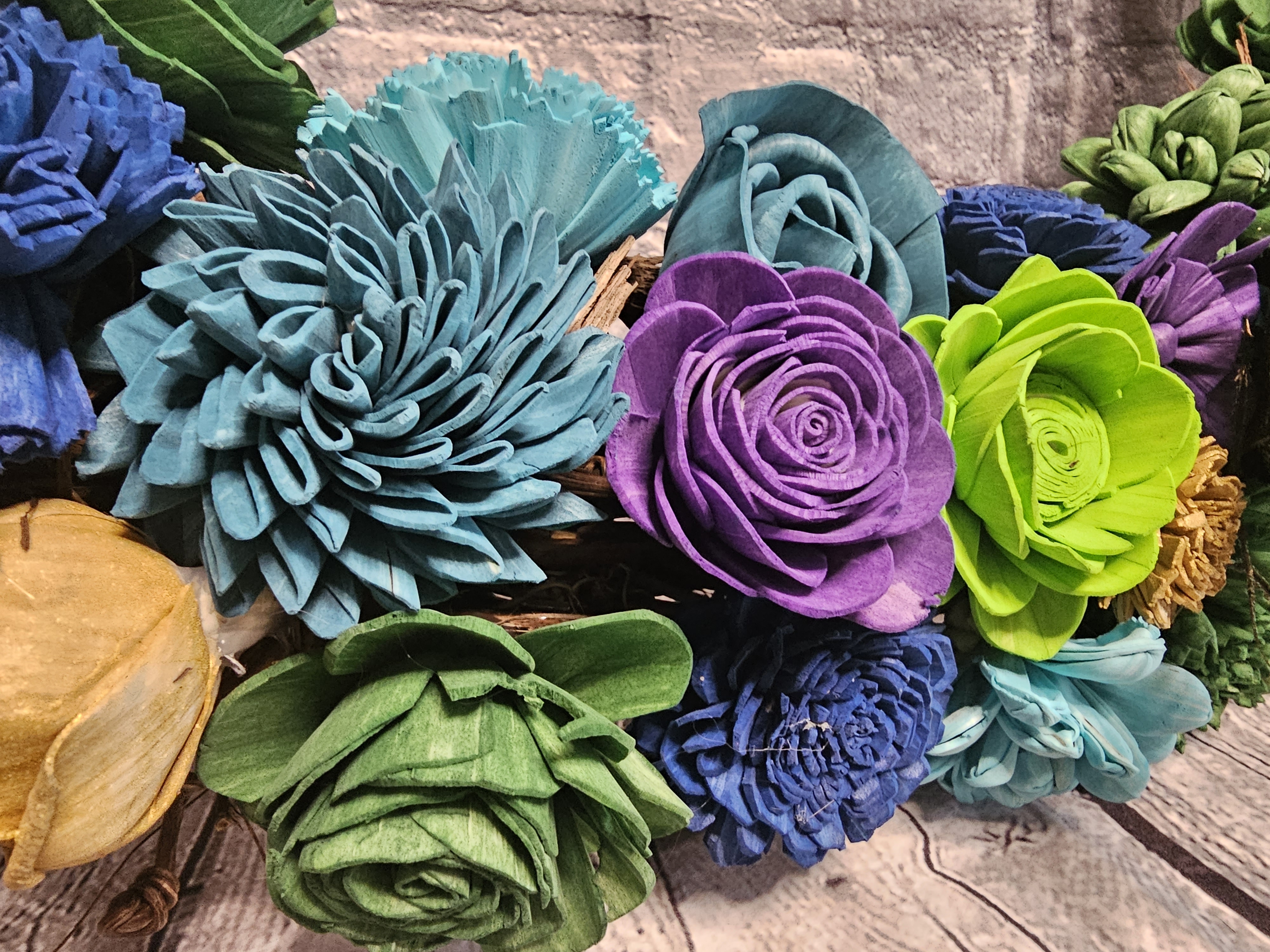 Each wreath is handcrafted from start to finish using individually hand-dyed sola wood flowers arranged on a natural 18" grapevine base. Every flower is carefully placed for balance, depth, and color harmony, then securely attached using professional-grade adhesive.