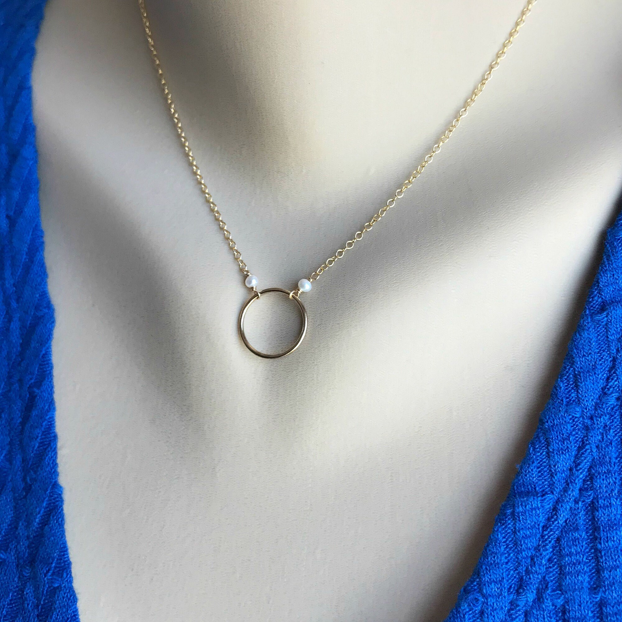 Pearl Circle Necklace Pearl Necklace June Birthstone Karma Necklace Dainty Necklace Eternity Necklace Layering Necklace Everyday NecklaceThe perfect everyday necklace. Circle link necklace with two luminous Pearls hand wired between circle link and chain. Choose 14K Gold filled Chain or Sterling Silver. Length of chain can be added for an additional fee.