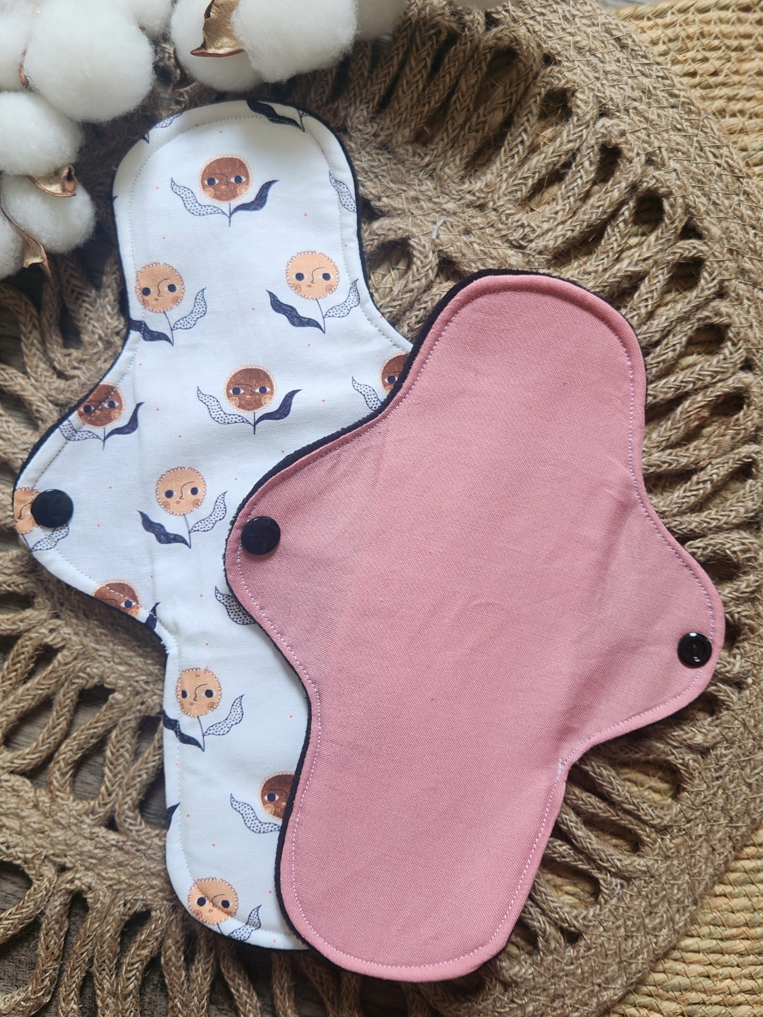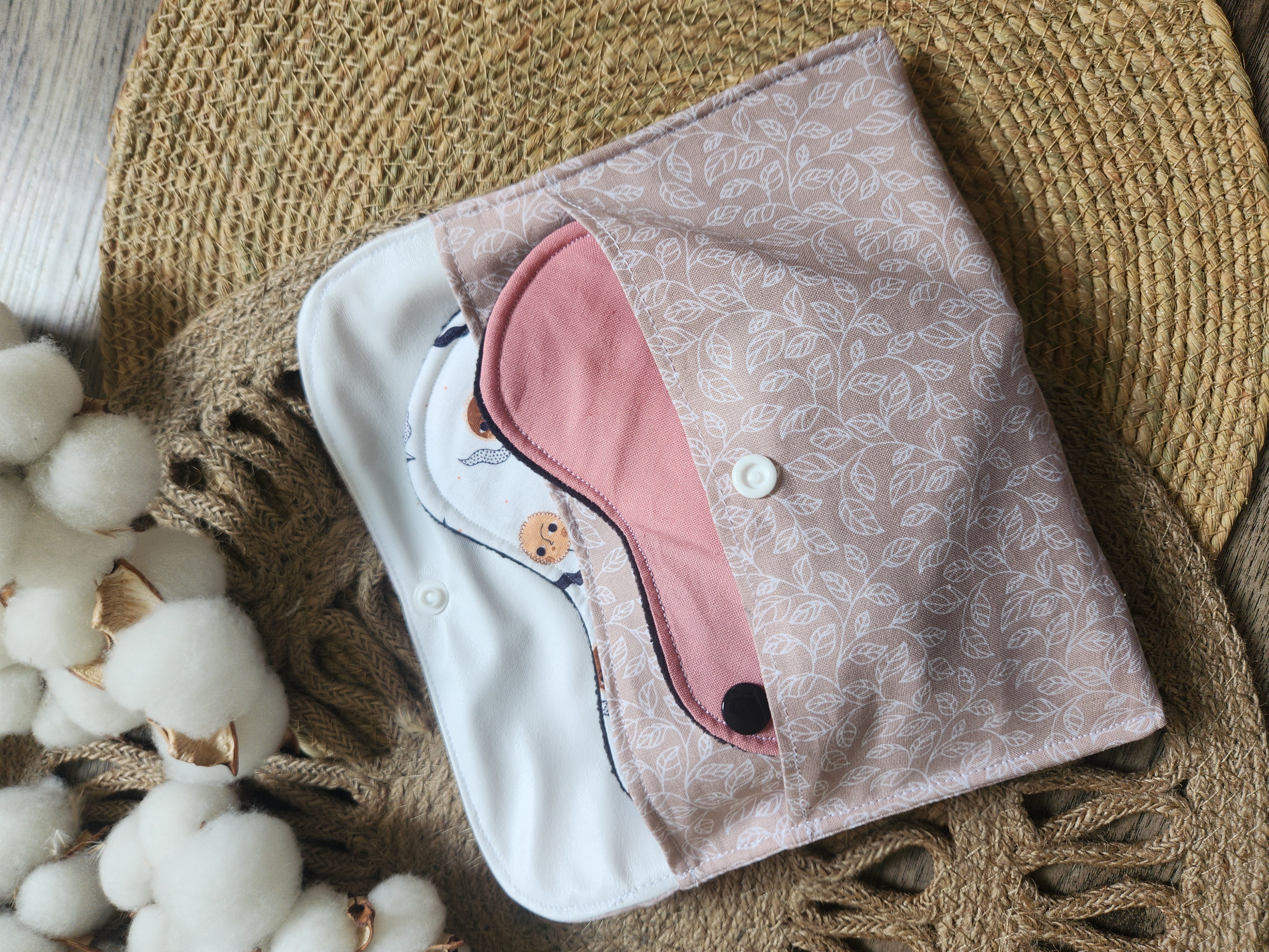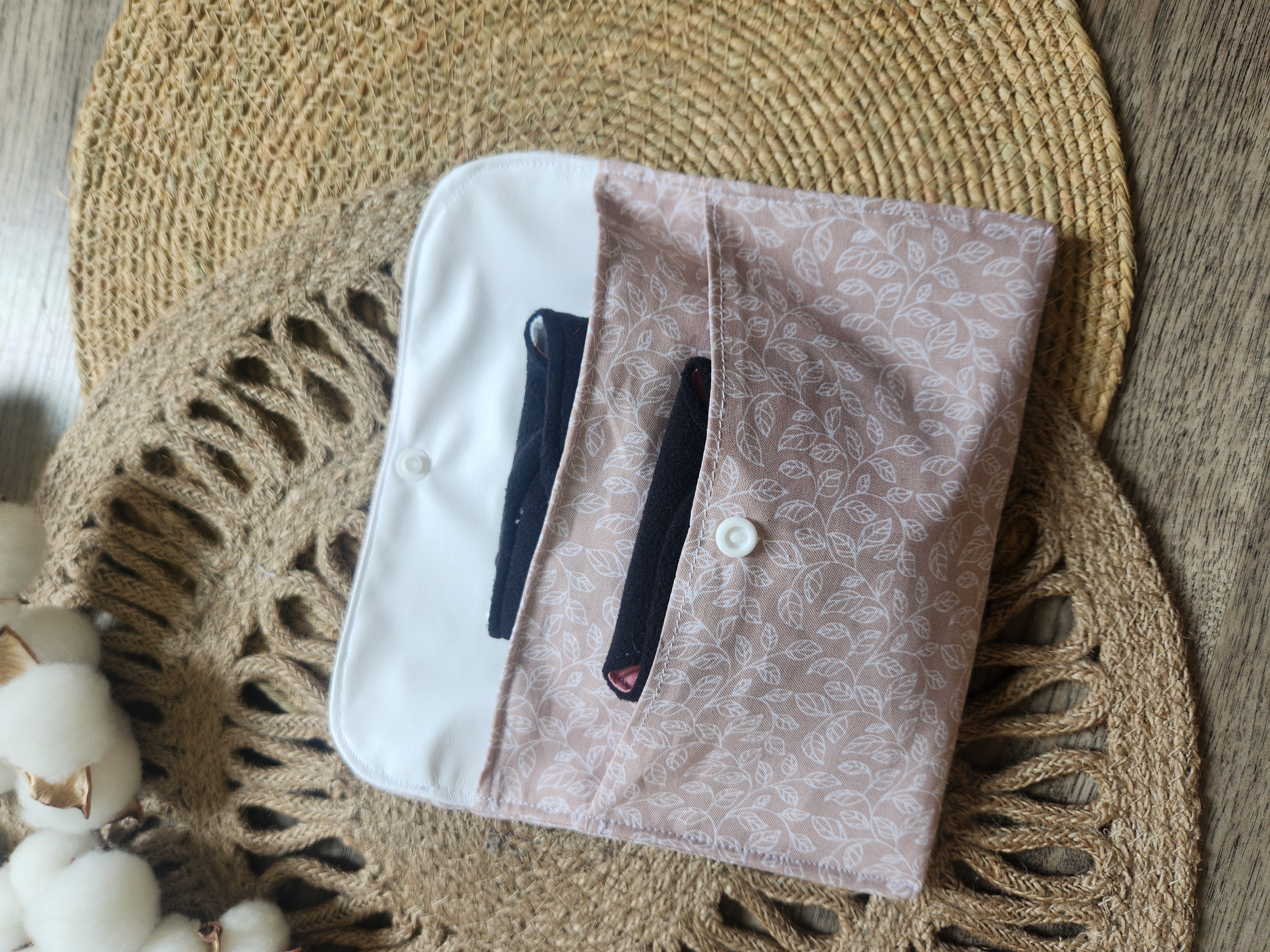 Each wet bag is crafted with a waterproof PUL lining pocket for soiled pads and a separate pocket for clean pads, featuring an exterior cotton fabric. Our bags have ample space to hold 2-3 pads, making them an ideal choice for those who value organization and convenience.