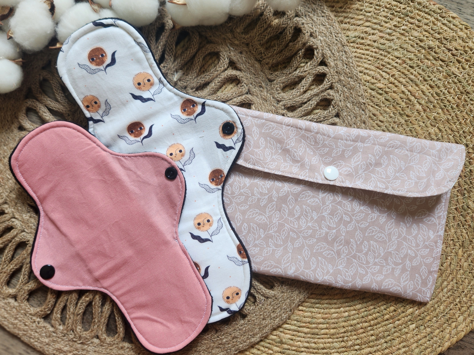 Period starter kit that includes one wet bag and two reusable Menstrual period pads.