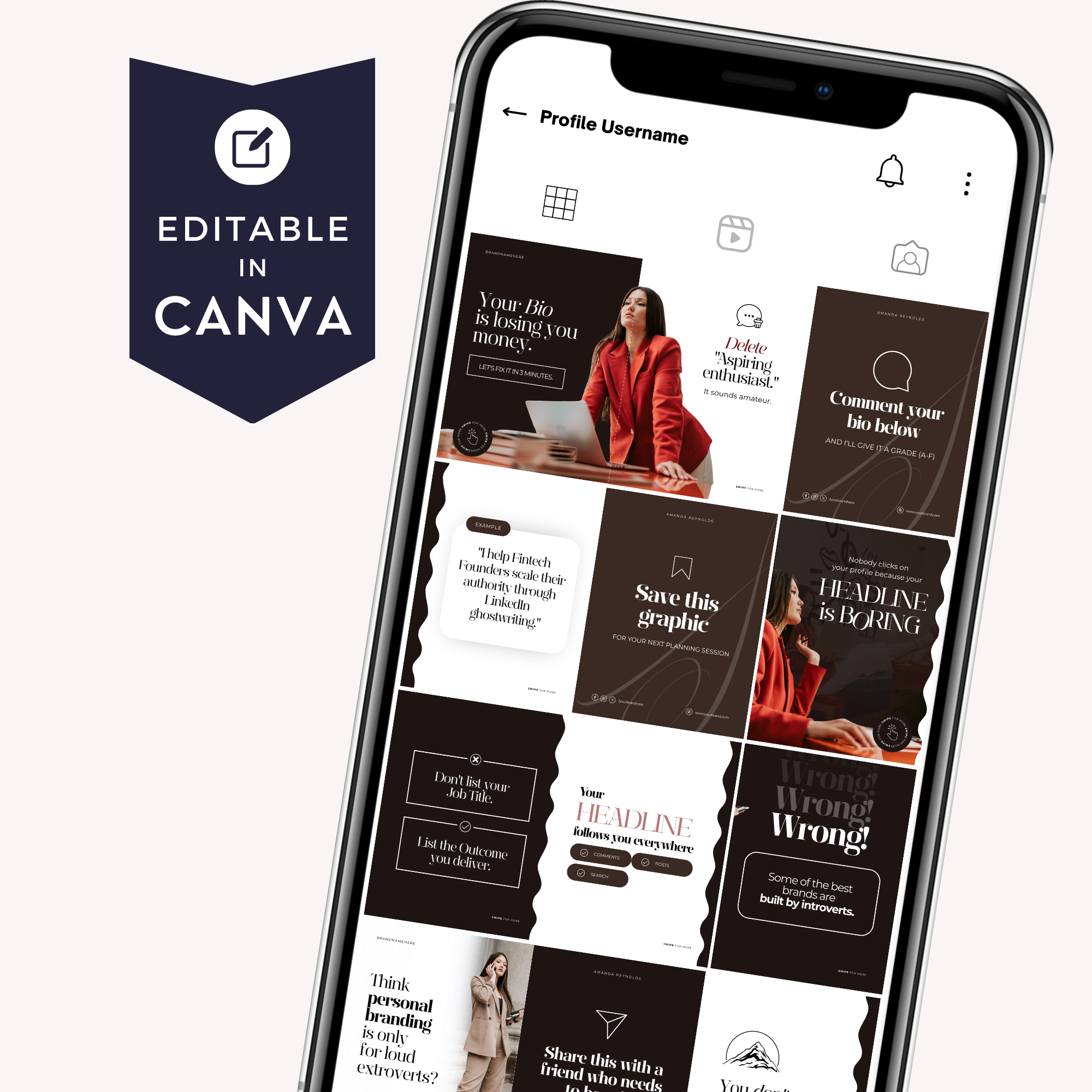 This Personal Brand Coach Carousel Template Pack is a Canva-editable set of swipe-style Instagram carousel designs made for brand coaches, business coaches, consultants, and service providers who want to create high-value content fast. Each carousel includes bold hook slides, clean layouts, and easy-to-customize text so you can plug in your niche, your message, and your offer in minutes.