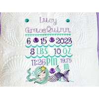 Do you need a gift for the new parents of a newborn? How about a gift that the new parents will keep for a lifetime? Then check out this adorable birth announcement pillow! All of the baby's birth information is embroidered on the front of the pillow cover which has a zipper on the back to make it easy to remove the pillow form for easy washing of the cover. This soft quilted heirloom pillow cover with a colorful dinosaur and jungle theme and birth statistics embroidered on the front is machine washable in cold water, gentle cycle. You can either lay flat to dry or put it in the dryer on low heat. It measures 18x18 so a 16x16 pillow form will fit, which can be purchased from me. For a fuller look you can purchase an 18x18 pillow form at any local craft store or retail store. For shipping cost purposes I don't offer the 18x18 form. This pillow cover will be loved by the new parents and is the perfect keepsake gift. If you need anything done differently, please send me a message and we can discuss any changes you would like. Please verify all of the birth statistics and the mailing address before finalizing your purchase. I will not be responsible for any incorrect information or address given to me unless it is my error...thank you! I offer FREE Ground Advantage Shipping. This beautiful pillow is lovingly made in a pet free, smoke free home. Thank you for visiting My Boutique By The Beach and come back often as I will be adding more birth announcement pillows! Thank you!