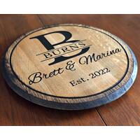 Personalized Barrel Head made just for you from authentic Kentucky Bourbon Barrels.