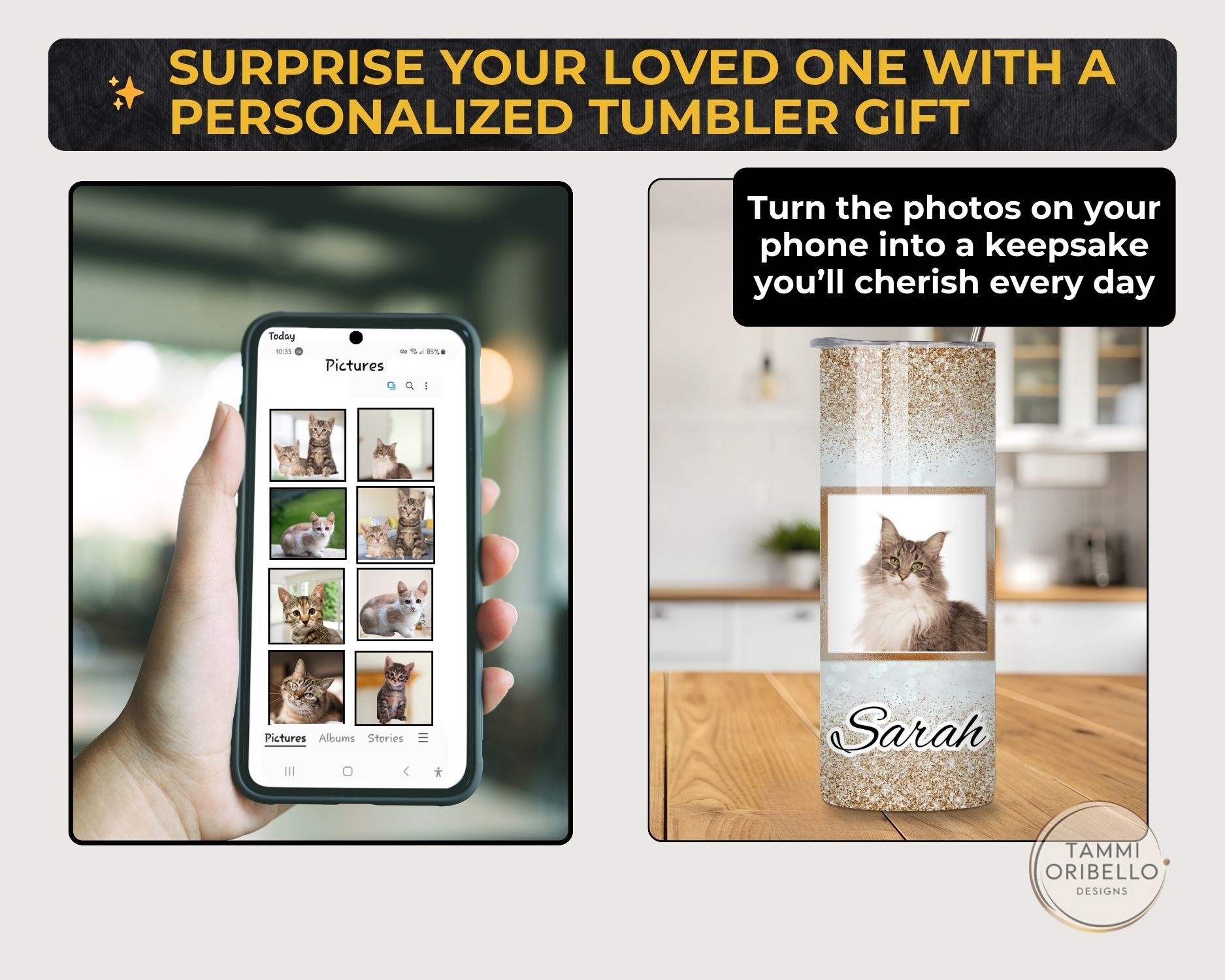 Welcome to Tammi Oribello Designs—where gifts aren’t just purchased, they're felt. Every tumbler, ornament, photo piece, and custom creation is made to honor the stories, relationships, and memories that shape your life. If you want a gift that brings smiles, sparks tears, and feels like it was made just for them, you’re in the right place.