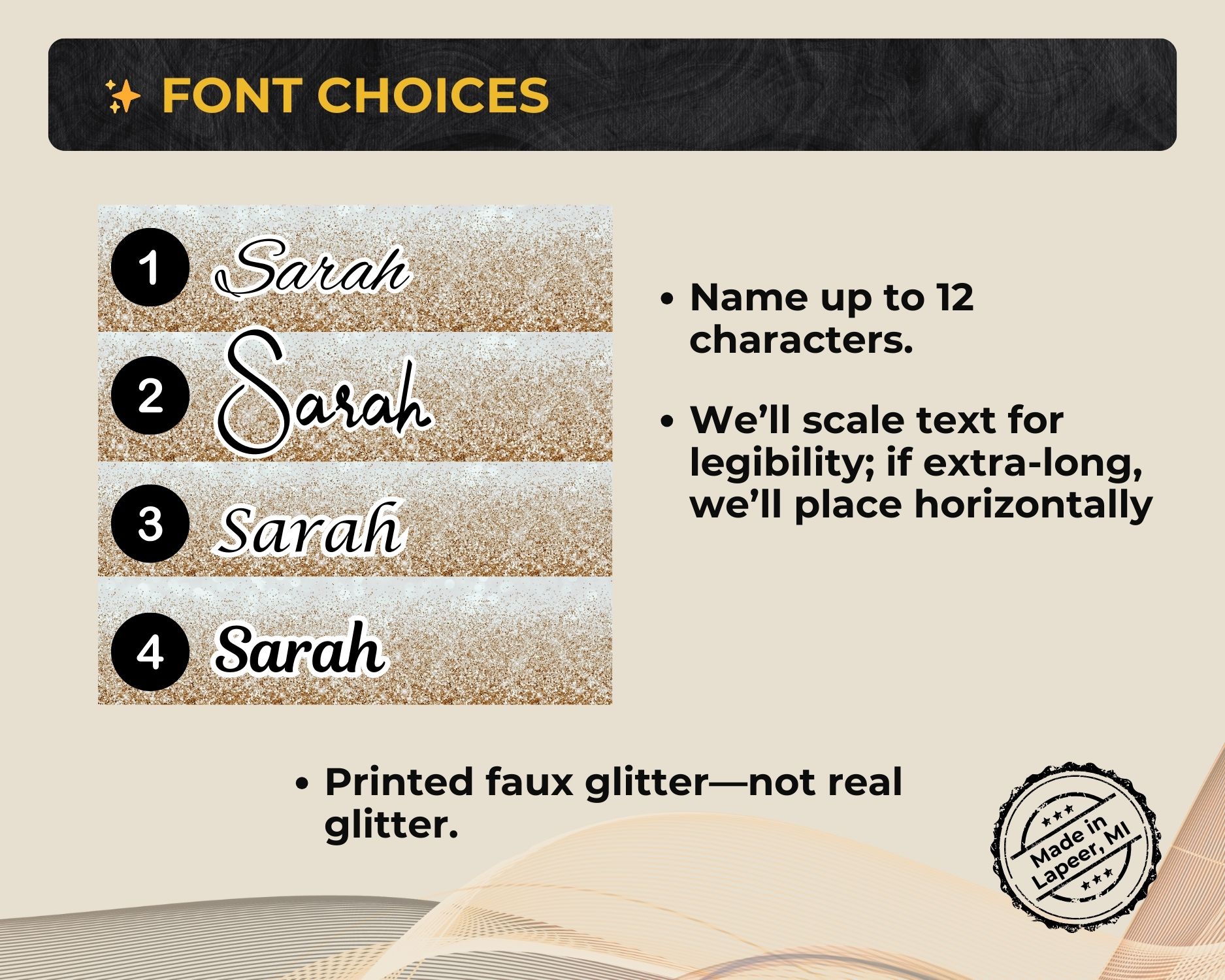 • Faux glitter background (not real glitter)
