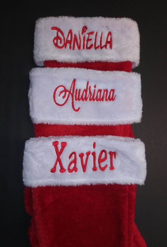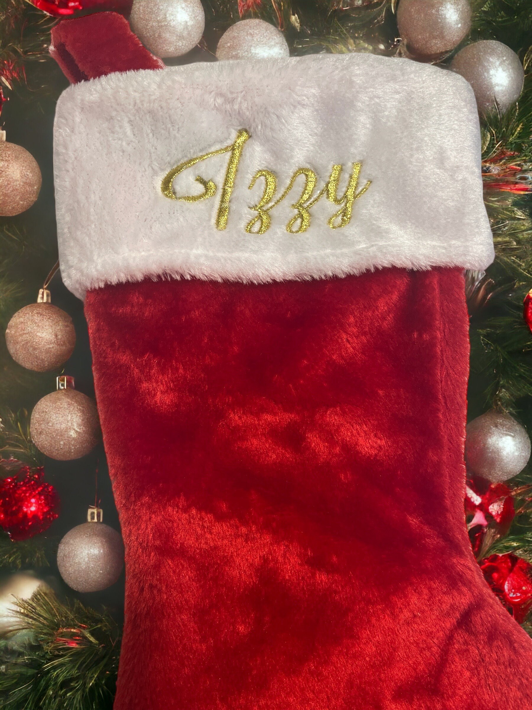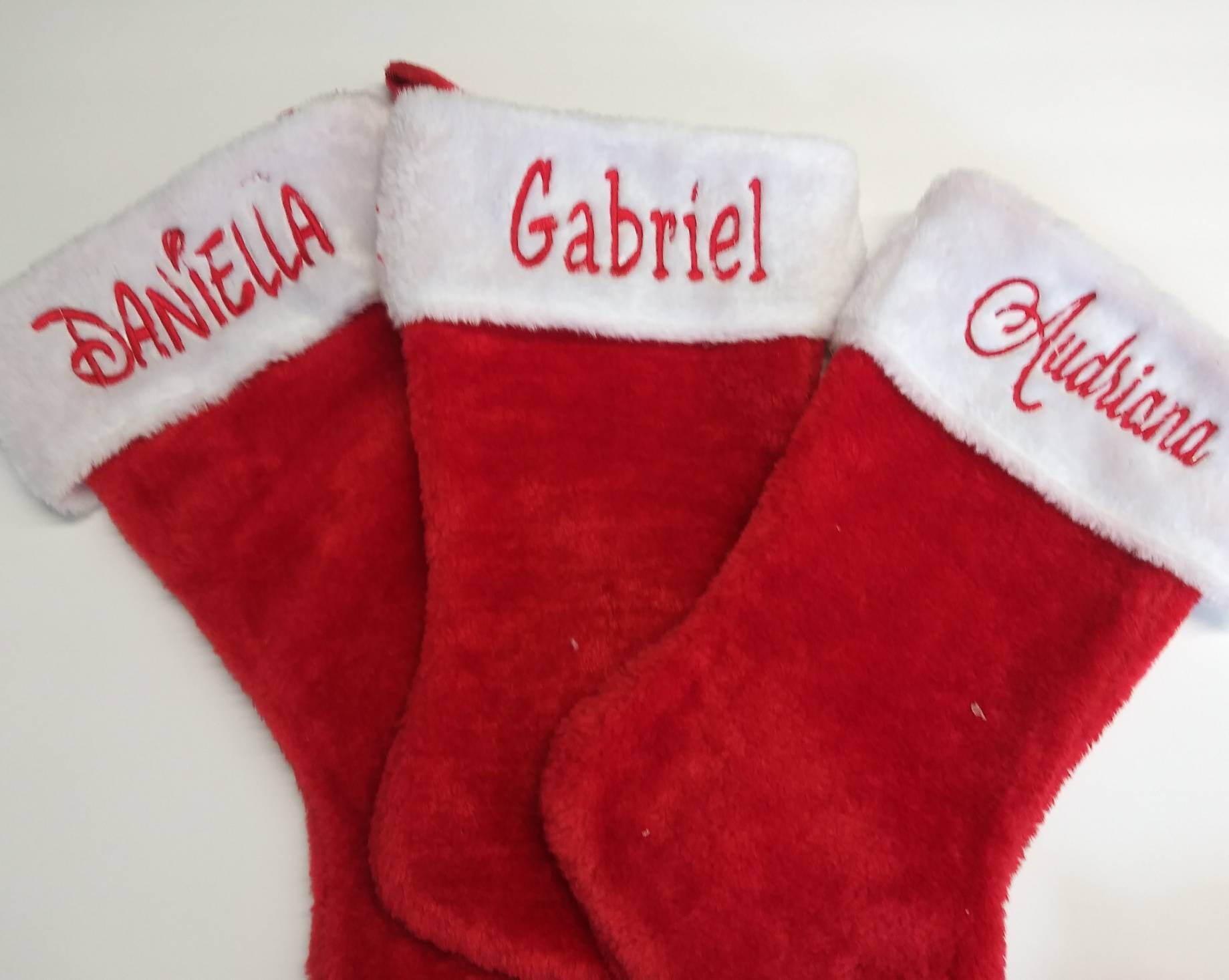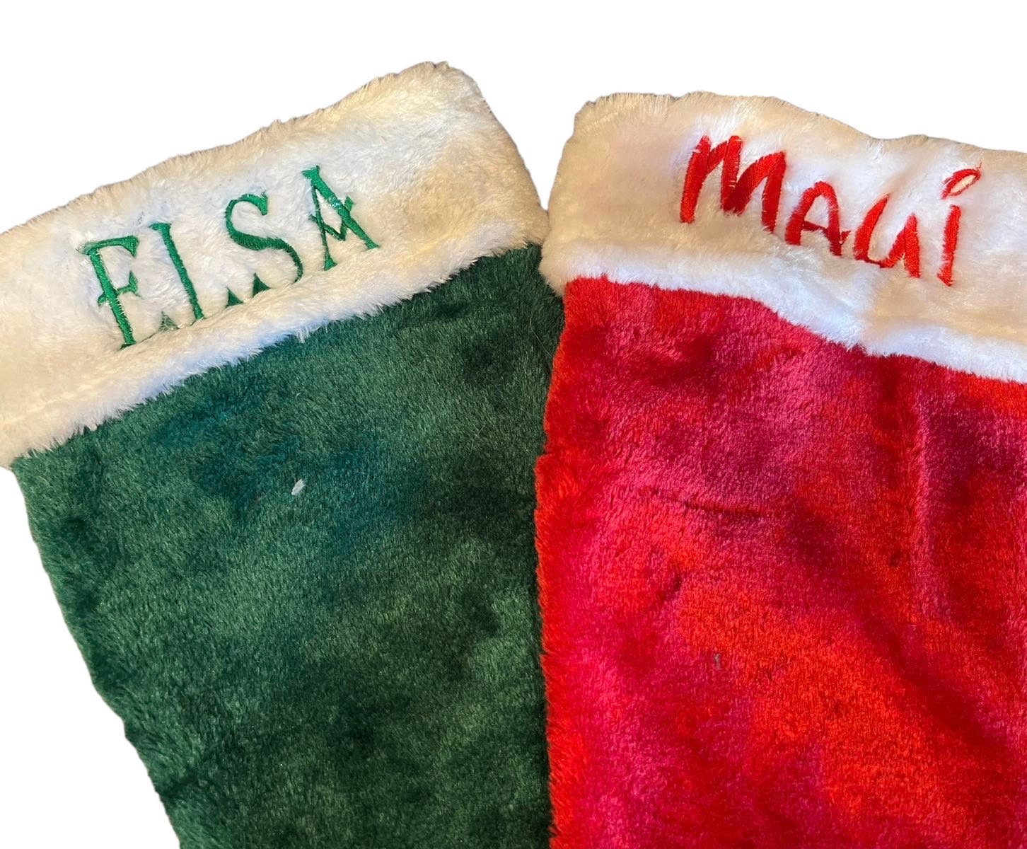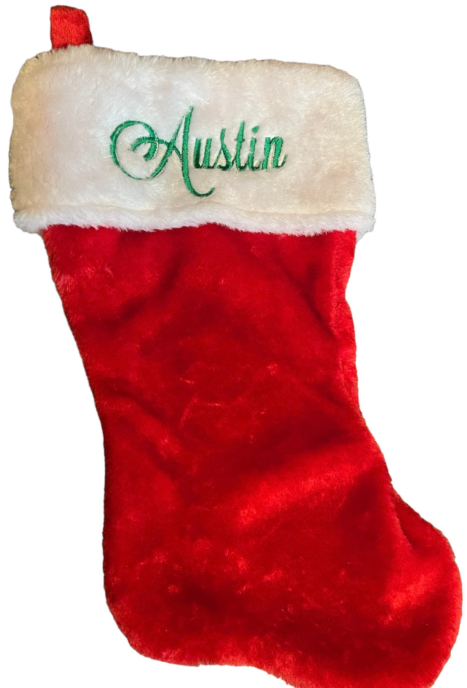 Personalized Christmas Stocking 18", Embroidered Name, Red or Green, White Plush, Custom Stocking, Christmas Decor, Gift, Holiday Tradition