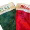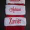 Names are written in red with polyester thread, if you would like a different color just add in the personalization box.