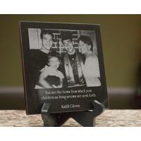 ♦ Laser Engraved for a precise image and Sand Blasted for a deep etched look and feel