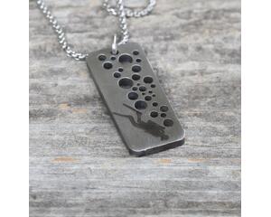 Unique Craftsmanship: Each necklace combines fused dichroic glass and a stainless steel base. We start by creating an Illustrator file of your desired name. Using a powerful water jet, we cut the fused glass and stainless steel parts into matching shapes. These pieces are then glued together with state-of-the-art adhesive, creating a sturdy and unique piece. The final touch is connecting the necklace to a bail, completing the creation process.