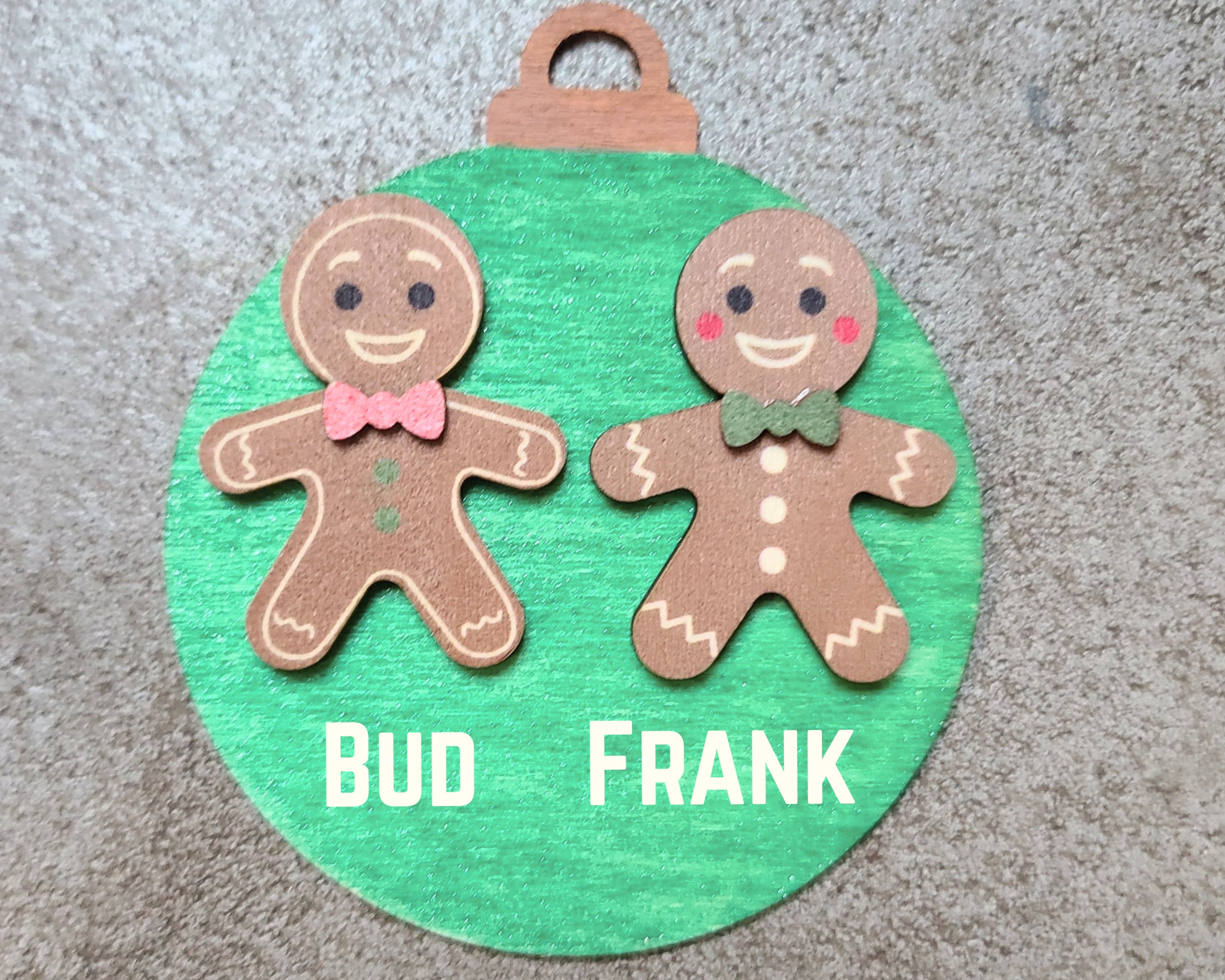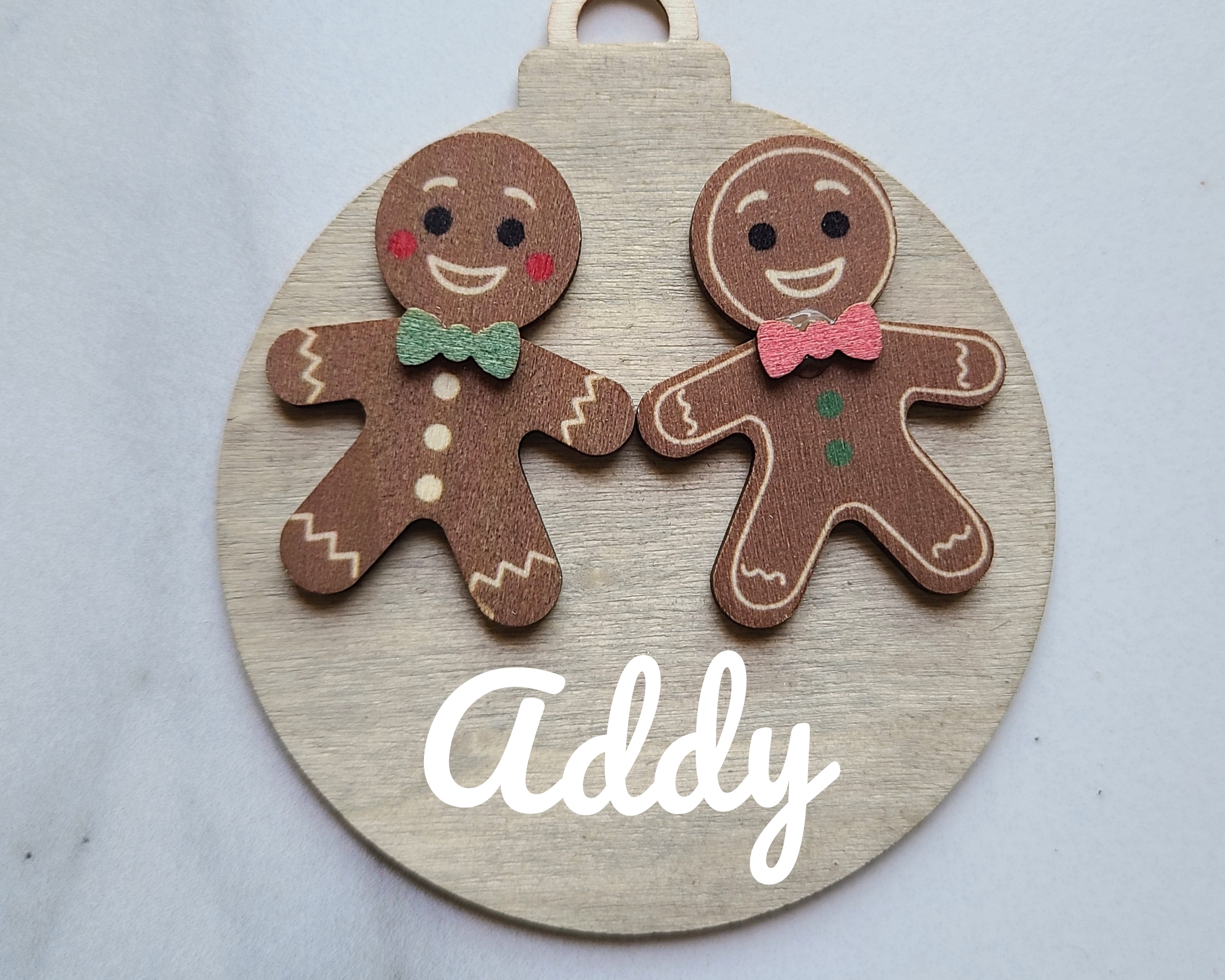 This custom gingerbread ornament can be painted any color and the name or date can also be any color. The example features a Palm Tree and Seashells, but anything is possible. It can have any word or short phrase personalized as well.