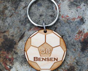 Keychain measures 1 3/4" (44mm) and is made of 1/4" thick wood for strength. Our wooden keychains are made of hardwood maple and sanded smooth, and then protected with polyurethane.