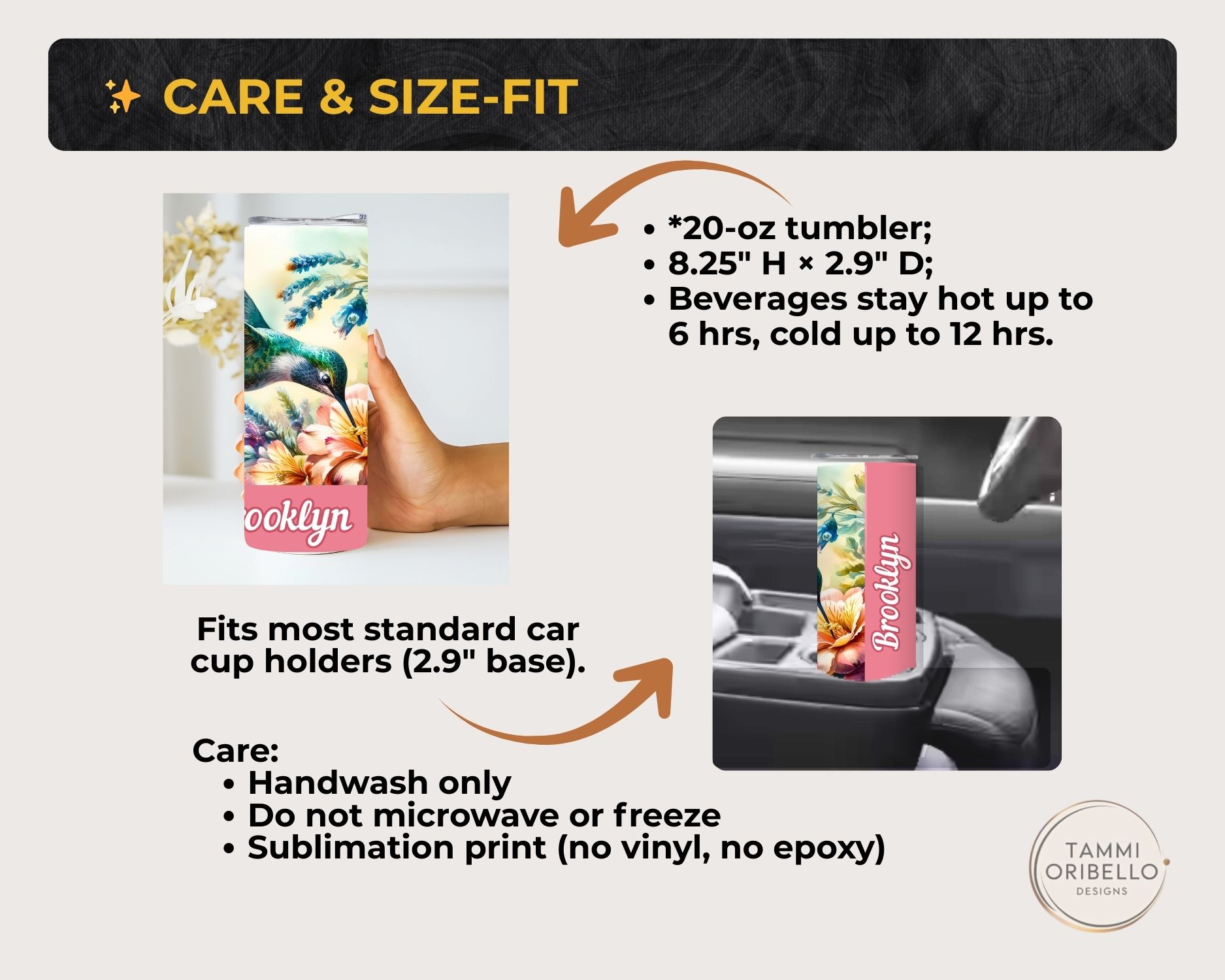 This personalized hummingbird tumbler brings color, joy, and sentiment into everyday moments. Every sip becomes a reminder of the people and memories that matter most.