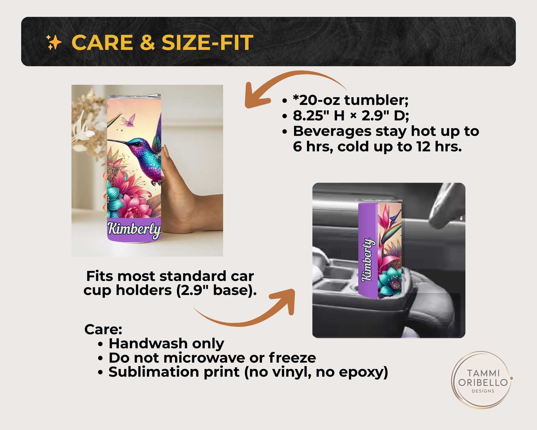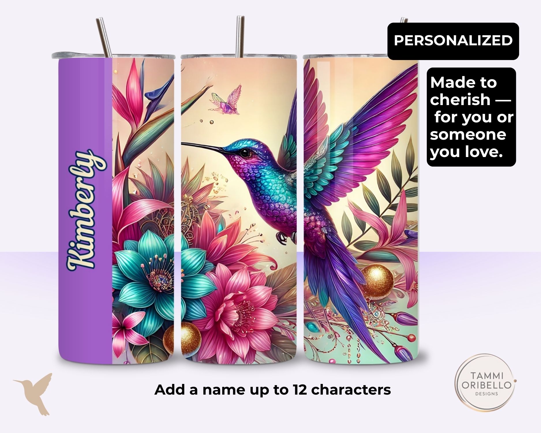 This tumbler isn’t just drinkware. It honors a name, memory, or connection. The hummingbird, floral art, and color choices are designed to spark emotion, comfort, and joy. It feels personal because it is.