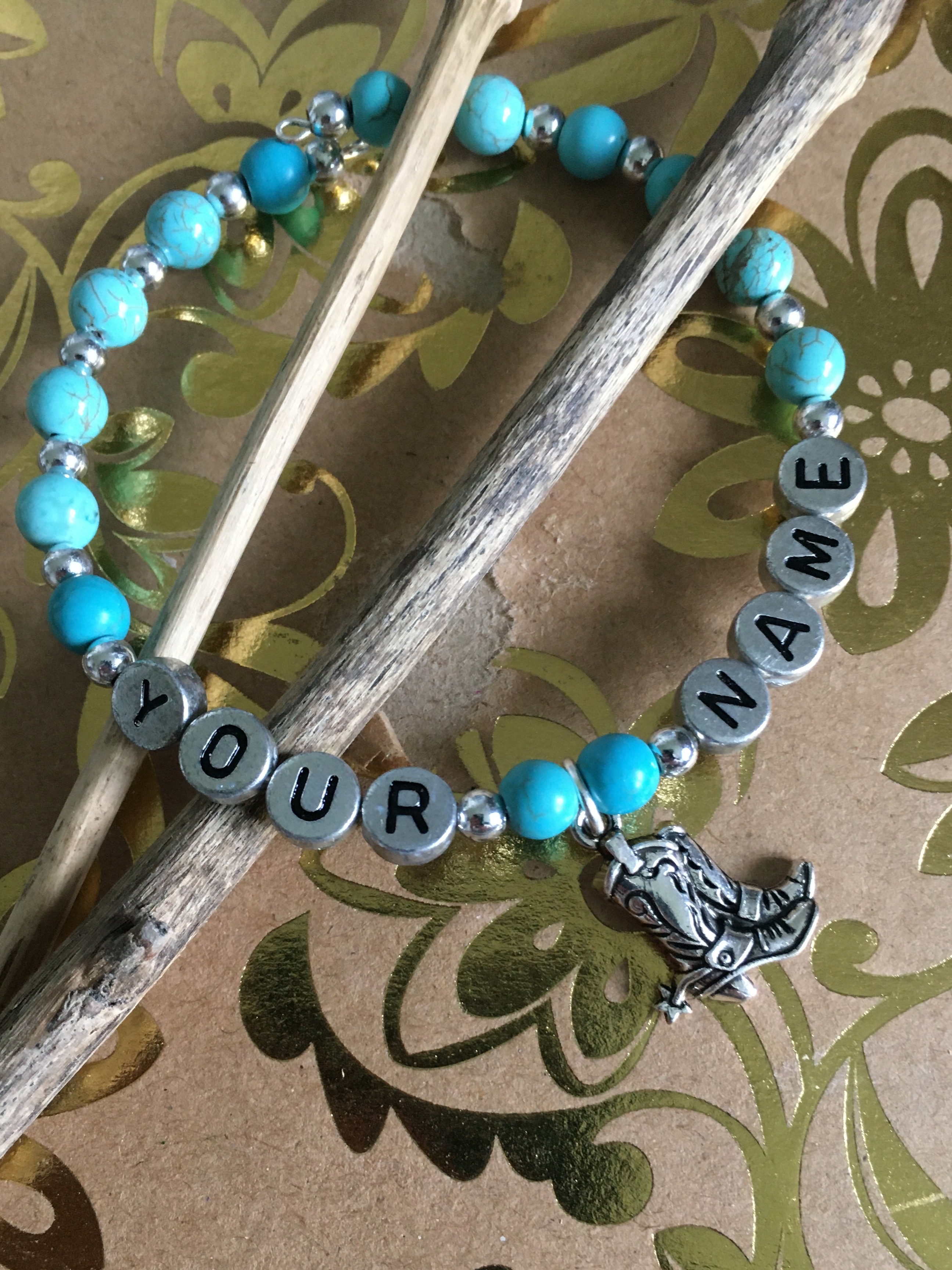 Each bracelet is carefully handcrafted using premium beads, including gemstone, acrylic, and crystal elements, along with durable memory wire that allows for a comfortable, flexible fit. The beads are strung with attention to detail, followed by the addition of a unique charm. The name beads can be customized with up to 9 letters, ensuring your bracelet is as unique as you are. Every bracelet is handmade with love and attention to quality.