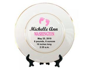 White Gloss Porcelain Plate with Gold Rim and black plastic stand, 7.5″ diameter with 4″ Imaging Area.