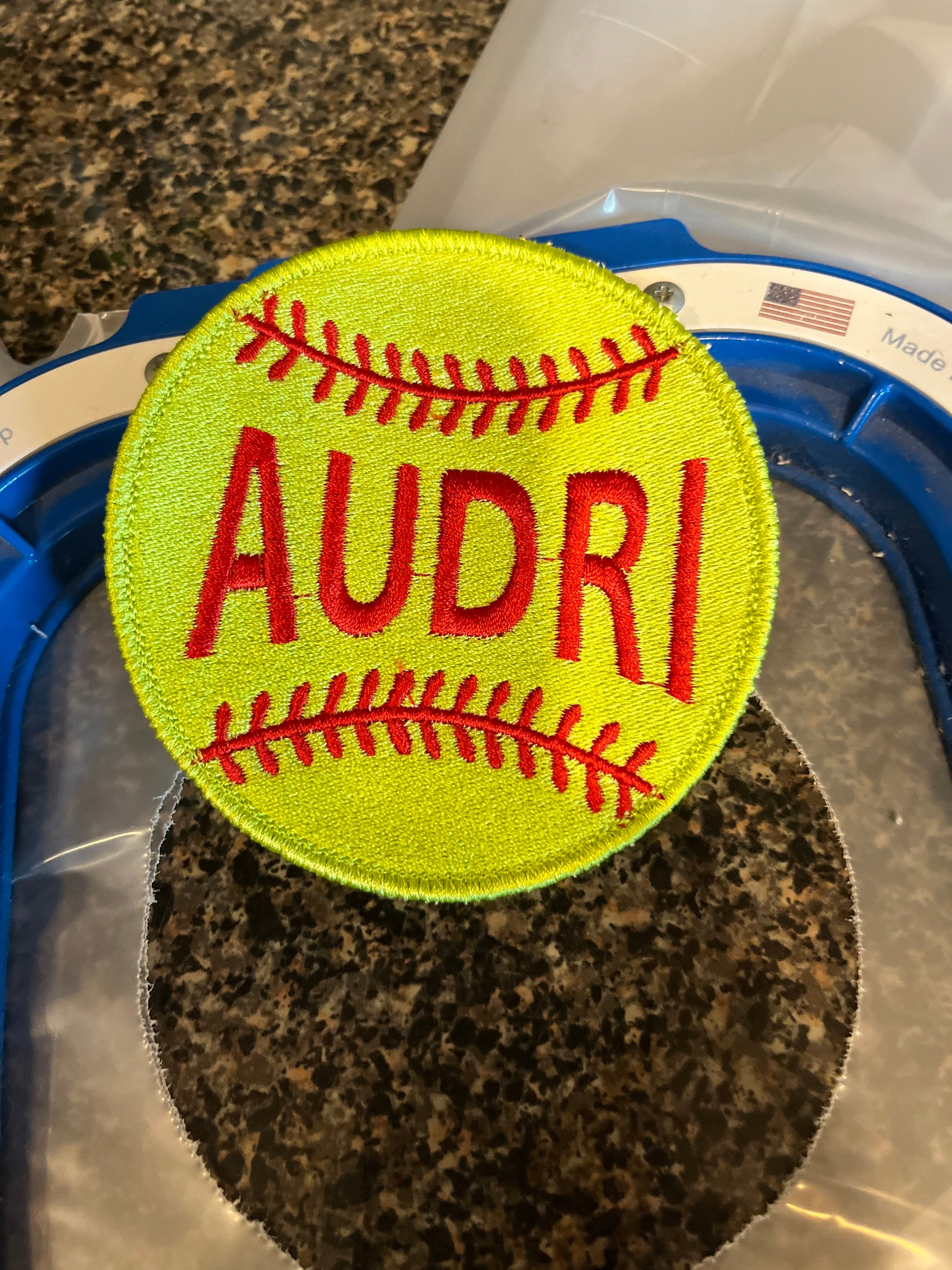 Personalized Softball Patch, 3, 4, or 5 inch Embroidered Patch, Iron On, Sew On, Perfect for Backpack