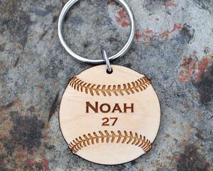 Keychain measures 1 3/4" (44mm) and is made of 1/4" thick wood for strength. Our wooden keychains are made of hardwood maple and sanded smooth, and then protected with polyurethane.