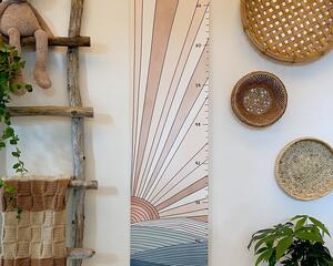 This wooden kids height chart features my original designs and consists of 4 panels of 1/8" thick plywood that are engraved and cut to shape with a laser. Each panel is 15.5" x 5.5". Total dimensions of the growth chart are 62"x5.5". Measurements begin at 16.25" (with the first visible mark being the 17" mark) and go up to 6 feet.