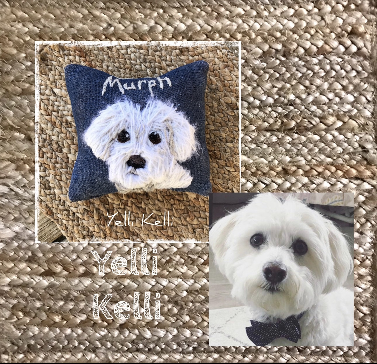 You tell me the preferred background color, and whether you want the pets name on the pillow.