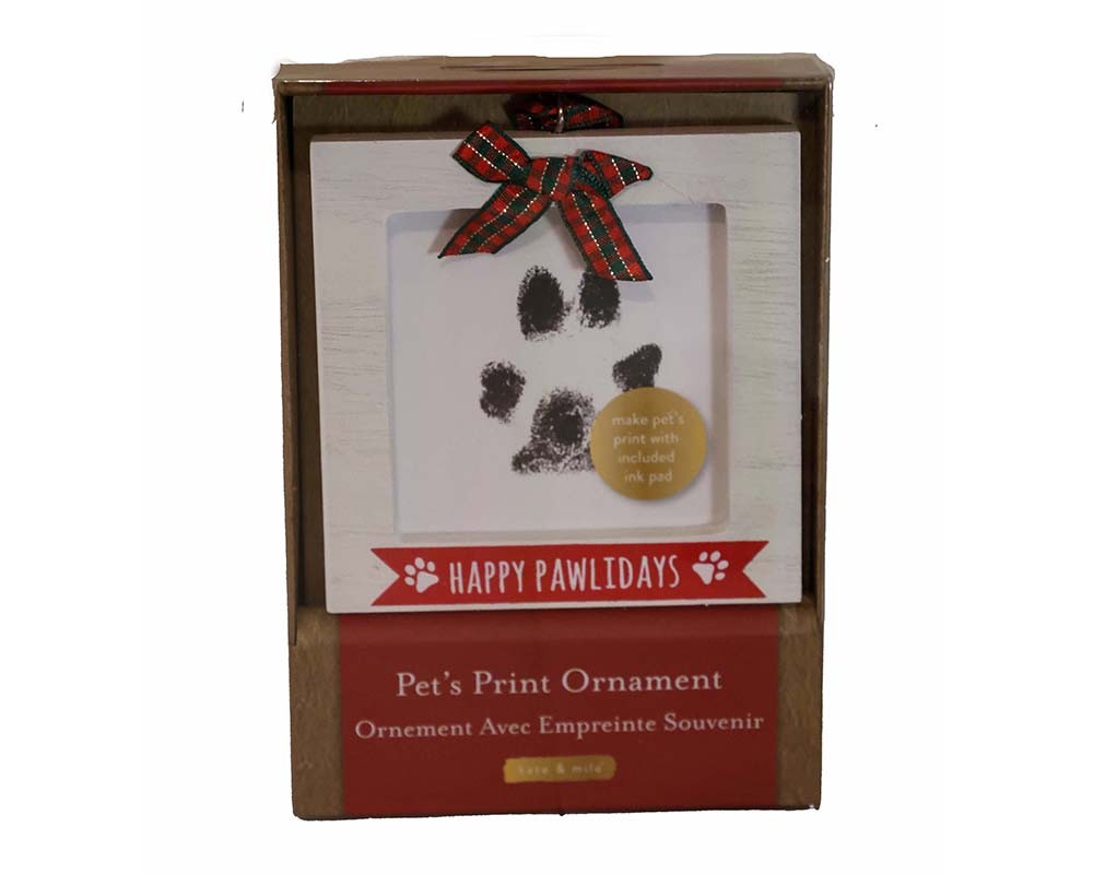 Celebrate the holidays with a Pet's Print Ornament and Dog Treats for your beloved dog!