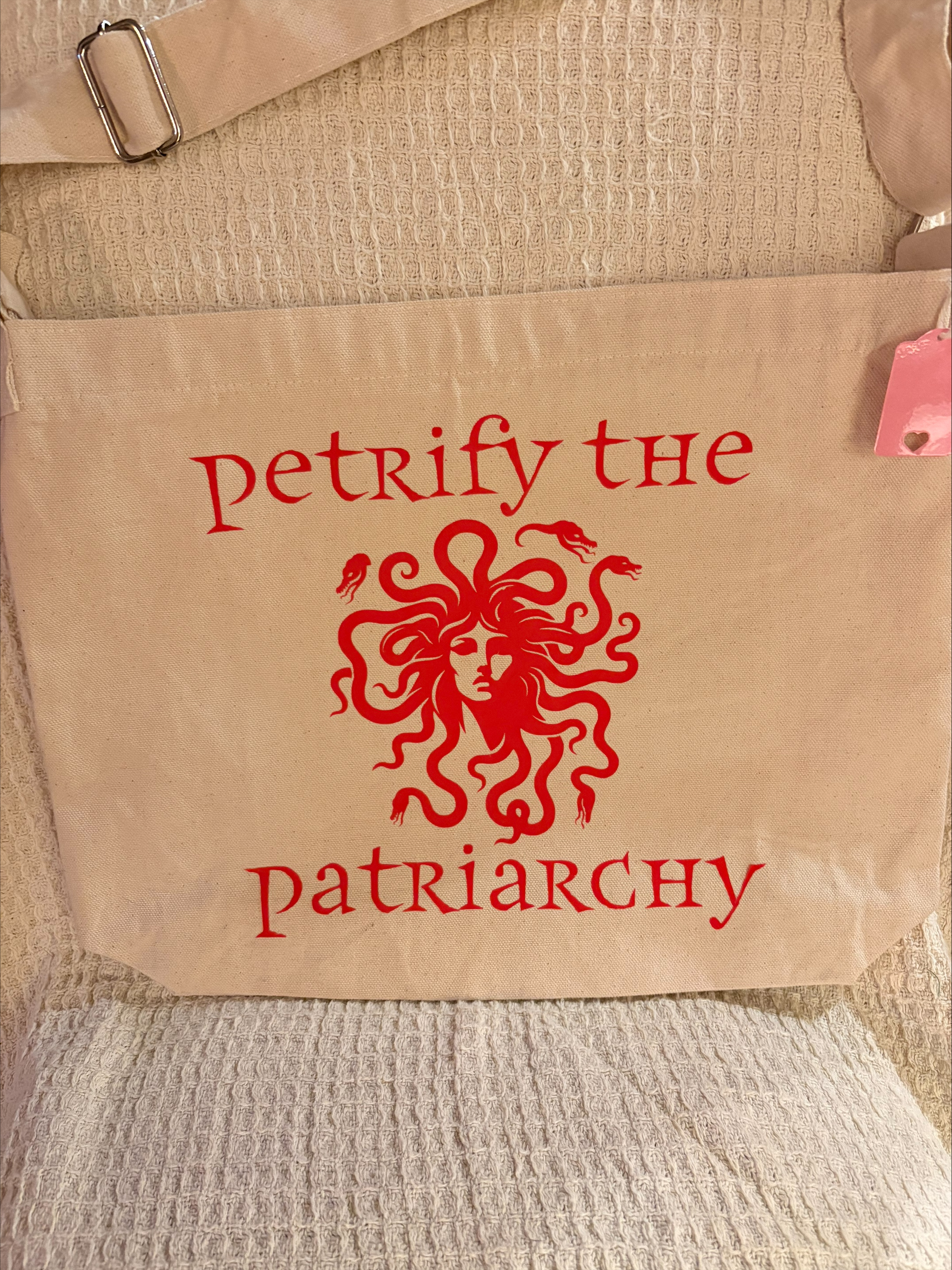 Channel your inner Medusa and turn outdated systems to stone — one glance at a time. This fierce, feminist tote is perfect for carrying your books, groceries, and righteous rage in style.