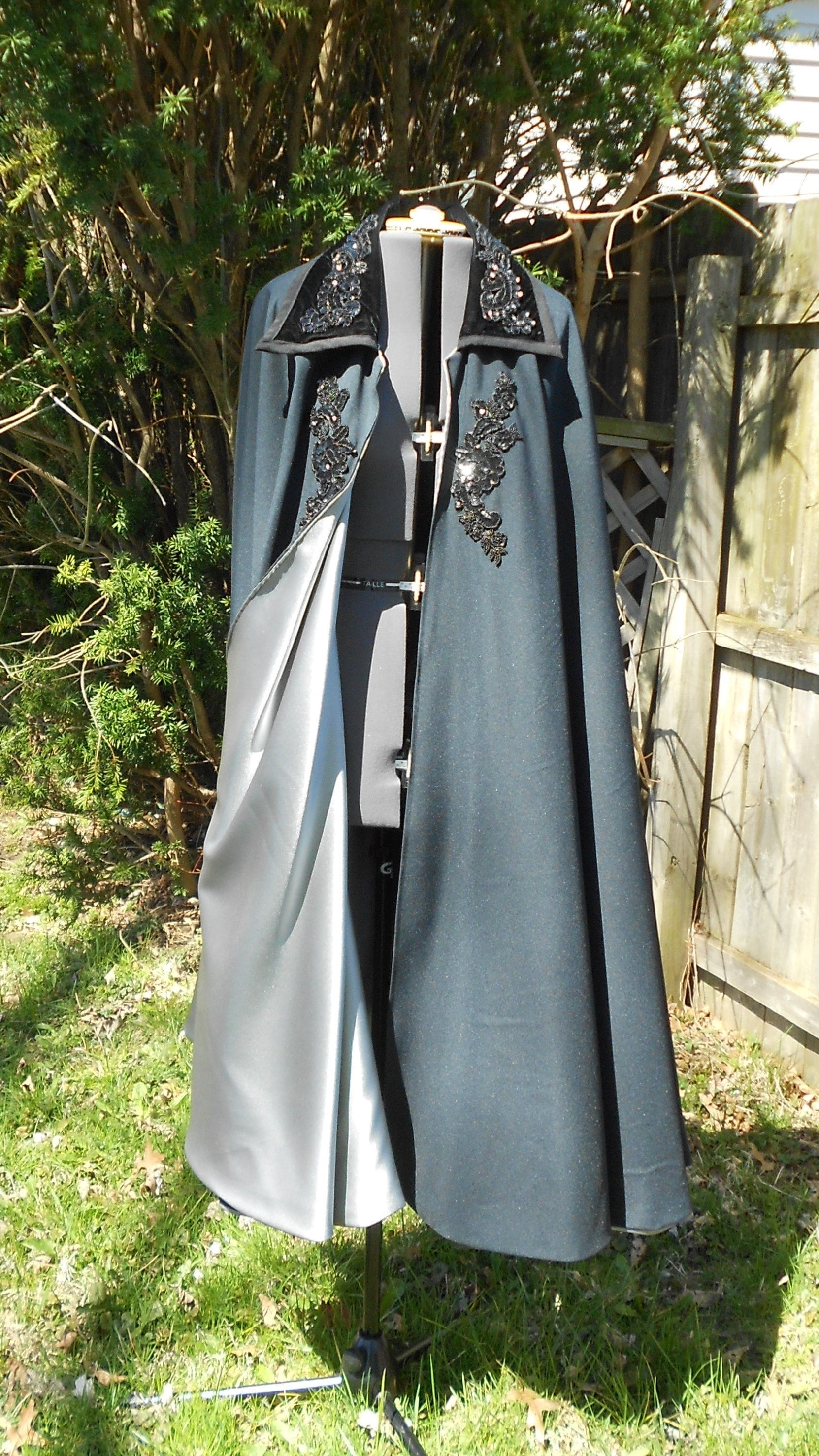 Phantom of the Opera inspired cloak costume or Masquerade Costume Cape, Wedding Cloak, with beaded appliques.