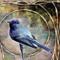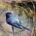 California Brown Pelicans are found throughout the west coast of the United States. Pelicans are sometimes depicted in popular culture as gangly-looking birds with pouch beaks in a comical way. But they can sometimes be quite majestic. This one is framed against a seashore with soft waves and watery grooves in the sand, framed in Art nouveau-styled filigree against a heavy canvas texture.