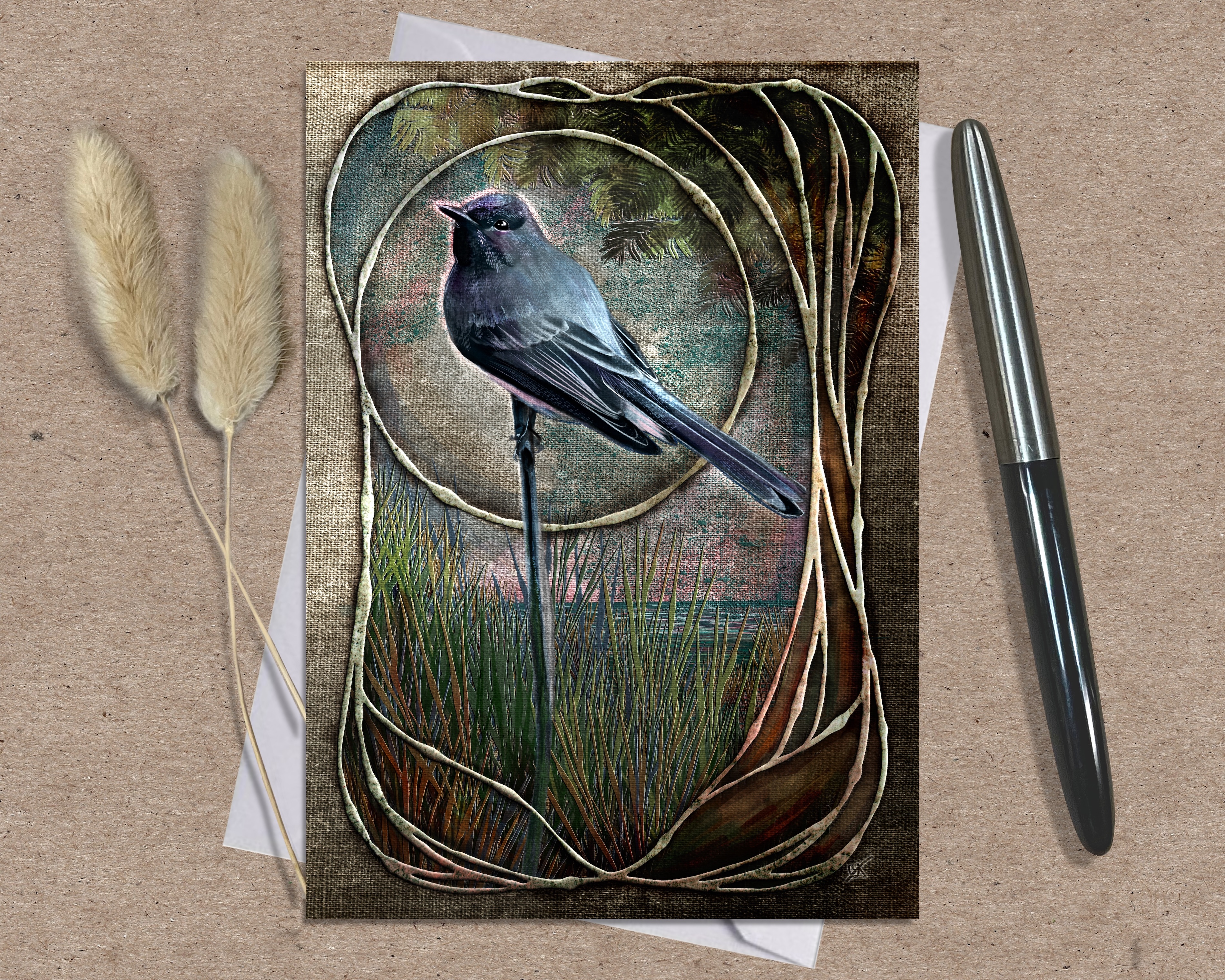 This card is blank inside, giving you the opportunity for writing a personalized message. You can use it in a variety of ways: happy birthday card, anniversary card, thank you notes, as a wedding card, congratulations card, sympathy card, invitation card - this blank card allows you to create a greeting card and any kind. This greeting card is 5x7 inches and includes a brown kraft paper envelope. The image on the front was illustrated by artist Corey Johnston, creating a unique handmade card. Your purchase supports the handmade artist community, creating original and unique gifts you won't find anywhere else!