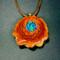 The pendant is suspended from an adjustable dark brown cord, finished with an antique brass-toned lobster clasp and extender chain for perfect length customization. It's an ideal accessory for lovers of nature (both land and sea), unique artisan jewelry, and those who appreciate a blend of organic materials with unexpected, striking accents.