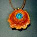 This exquisite handmade necklace features a captivating pendant crafted from a real pine cone cross-section. The wood itself possesses rich, warm reddish-brown tones and a beautiful natural grain.